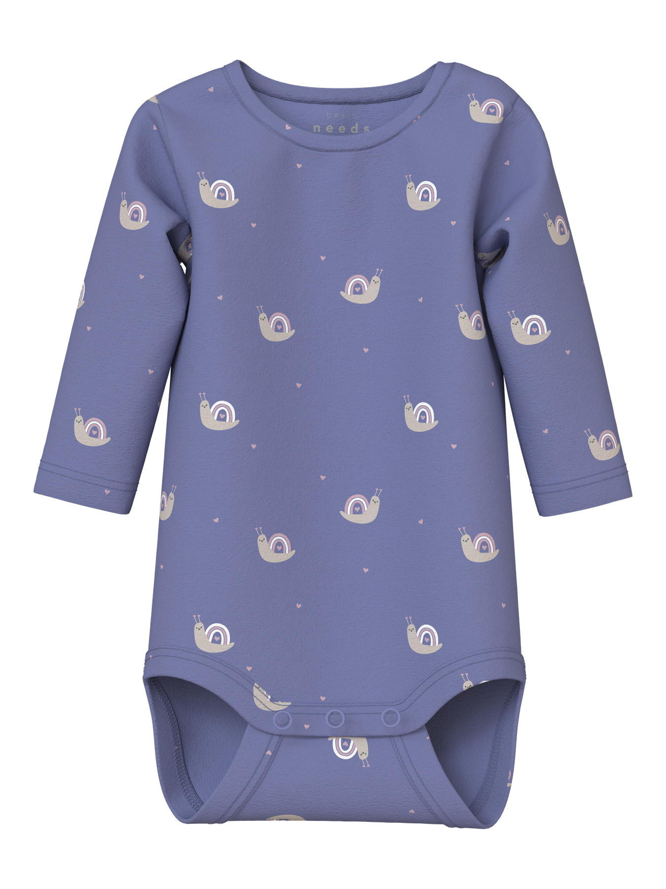 Superfin og lækker body fra Name It. Bodyen har lange ærmer og knappelukning ved bleen samt en trykknap ved skulderen, så den er nem at få af og på. Den kommer i det fineste print.