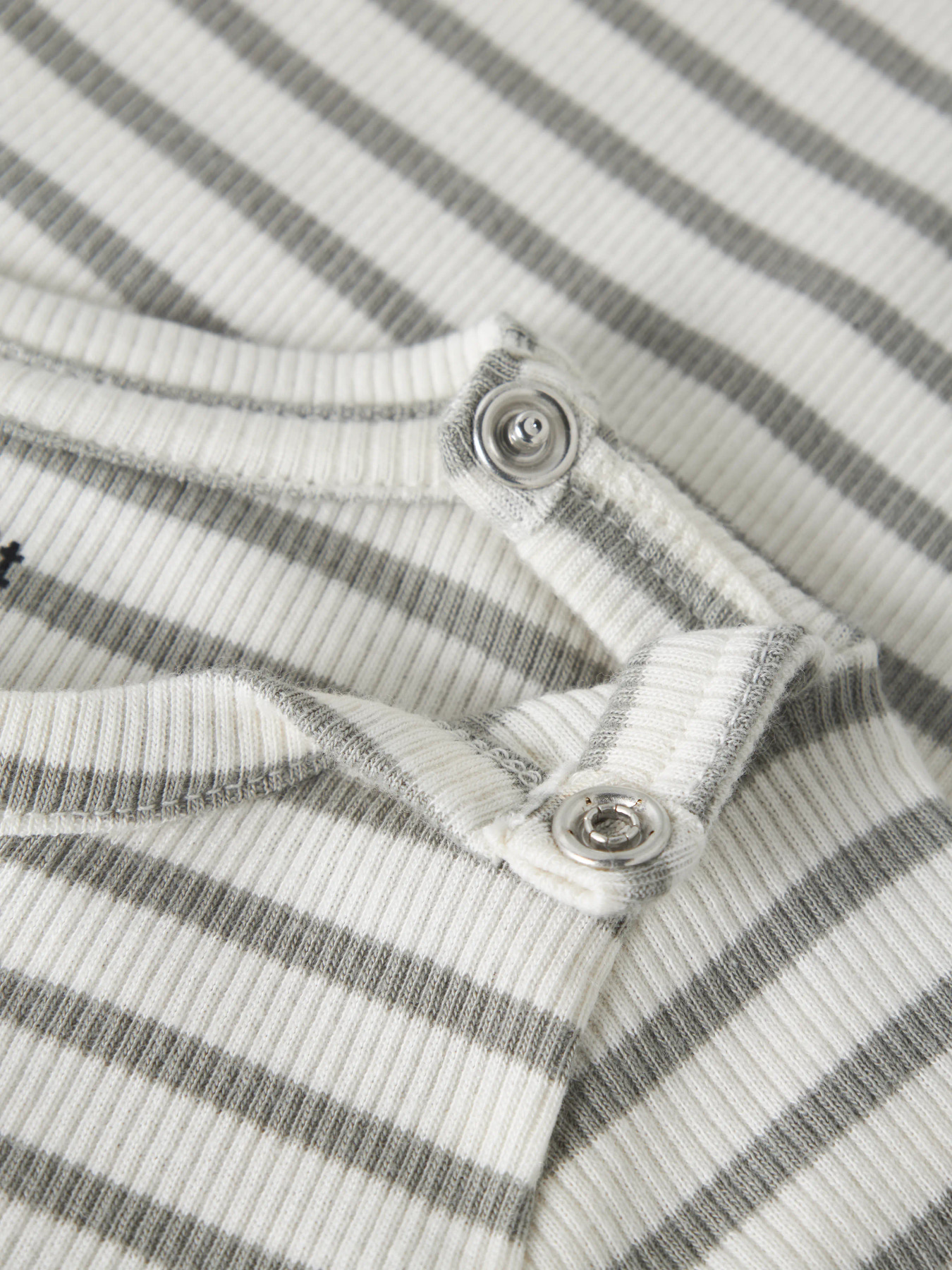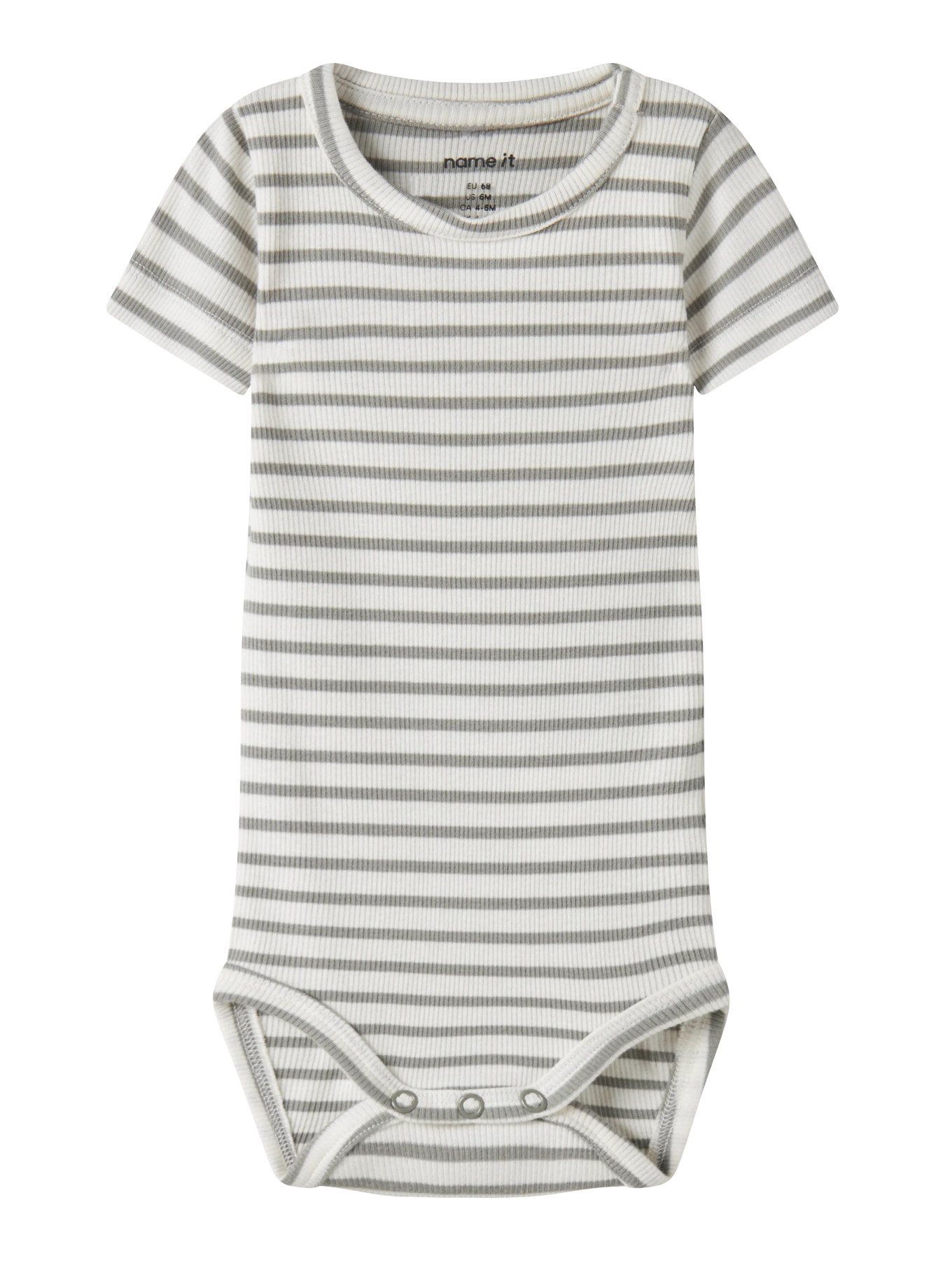 Den er fremstillet i ribstrik med lodret struktur og god elasticitet, som sikrer en behagelig pasform og høj bevægelsesfrihed. Bodyen har rund hals og korte ærmer – ideel til både hverdag og lag-på-lag styling.