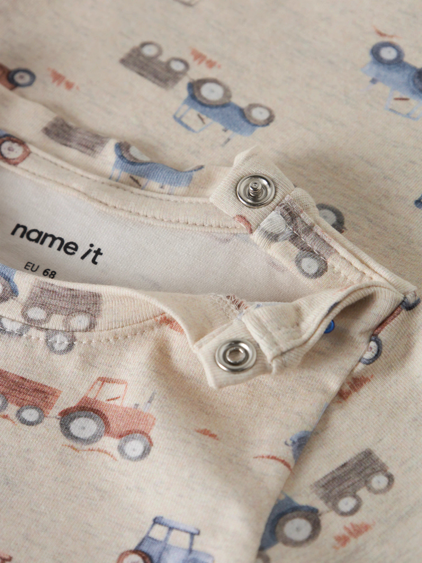 Bløde og praktiske bodystockings til børn, perfekte til brug hele året. Fremstillet i let og elastisk jersey med rund hals og lange ærmer for komfort og bevægelsesfrihed. Trykknapper ved skridt og skulder samt gentaget mønster over hele stoffet gør dem både nemme at tage på og stilfulde.