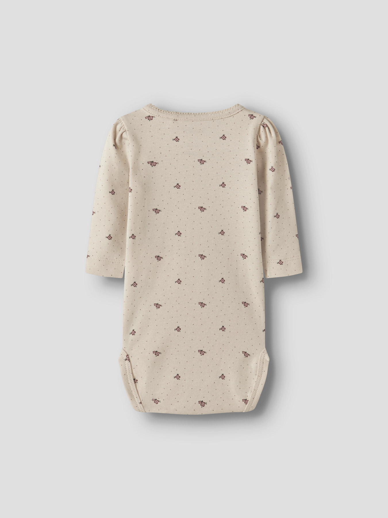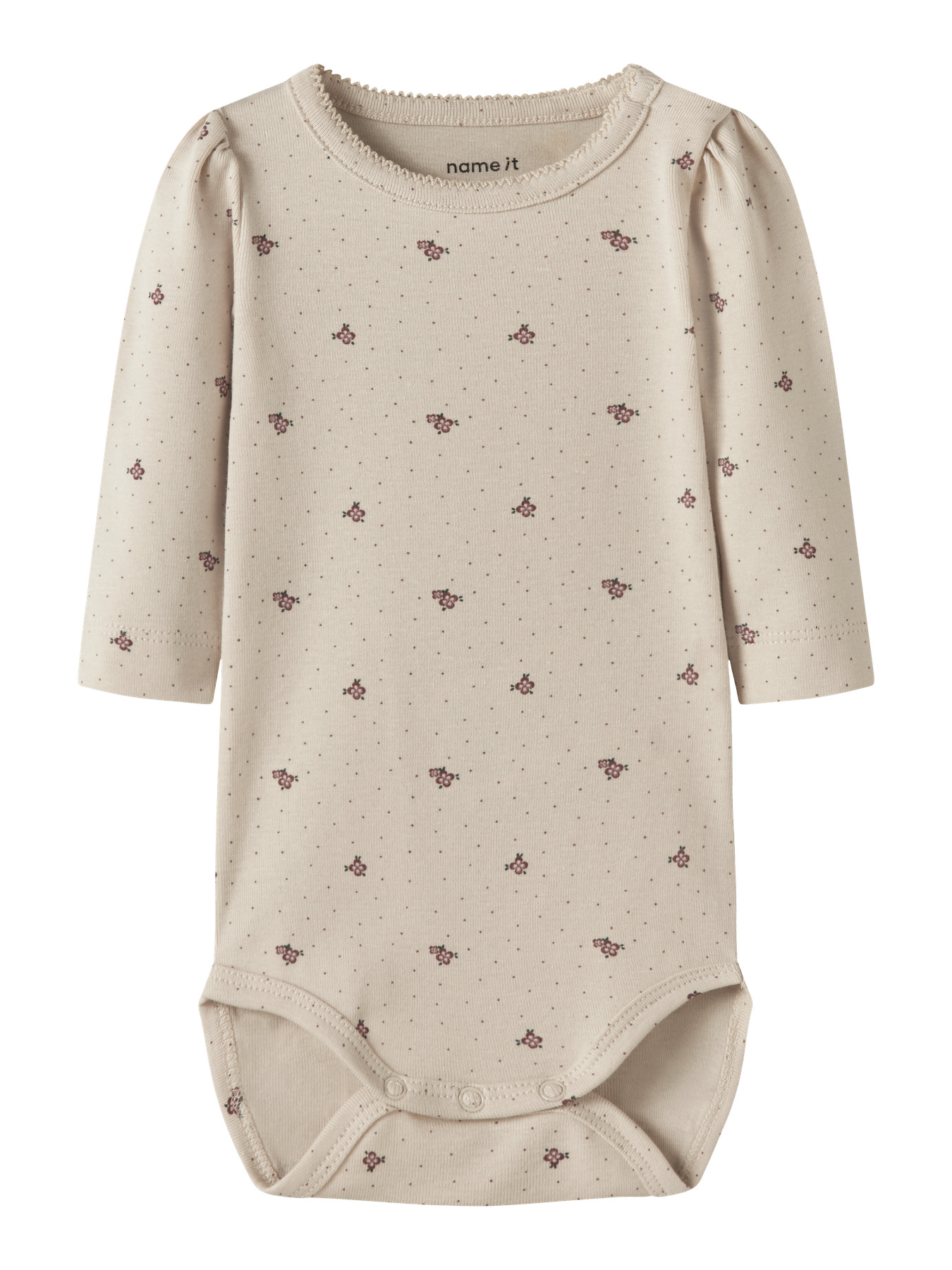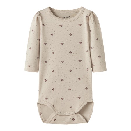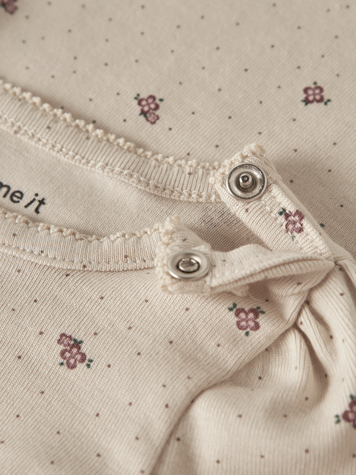 Opdater dit barns garderobe med en blød body, perfekt til brug hele året. Den er lavet i ribstrik med god stræk for en behagelig og tidløs pasform. Designet har rund hals, lange ærmer og trykknapper ved bleen og skulder for nem påklædning. Sødt all-over print.