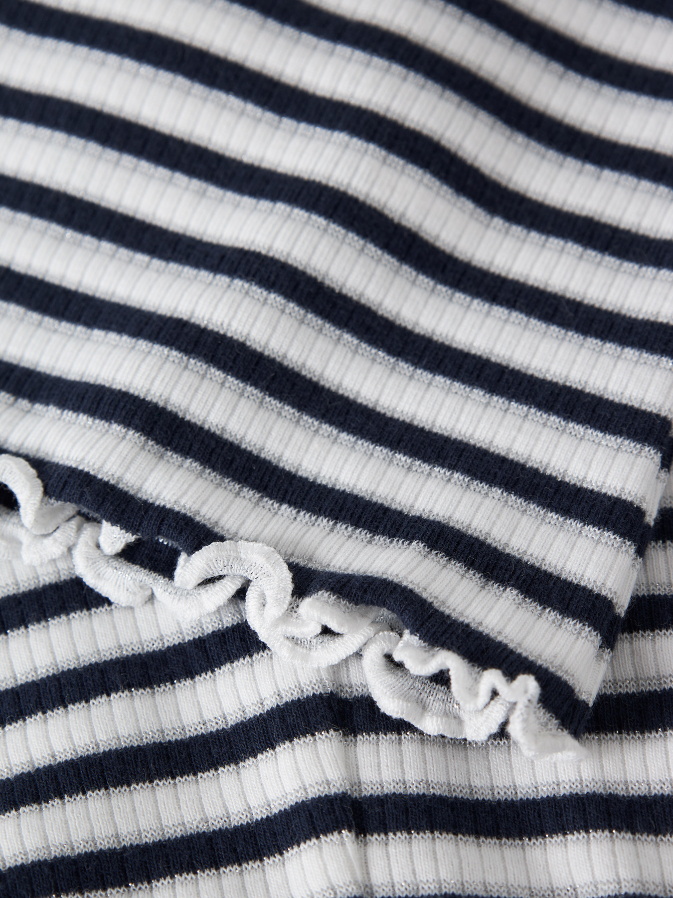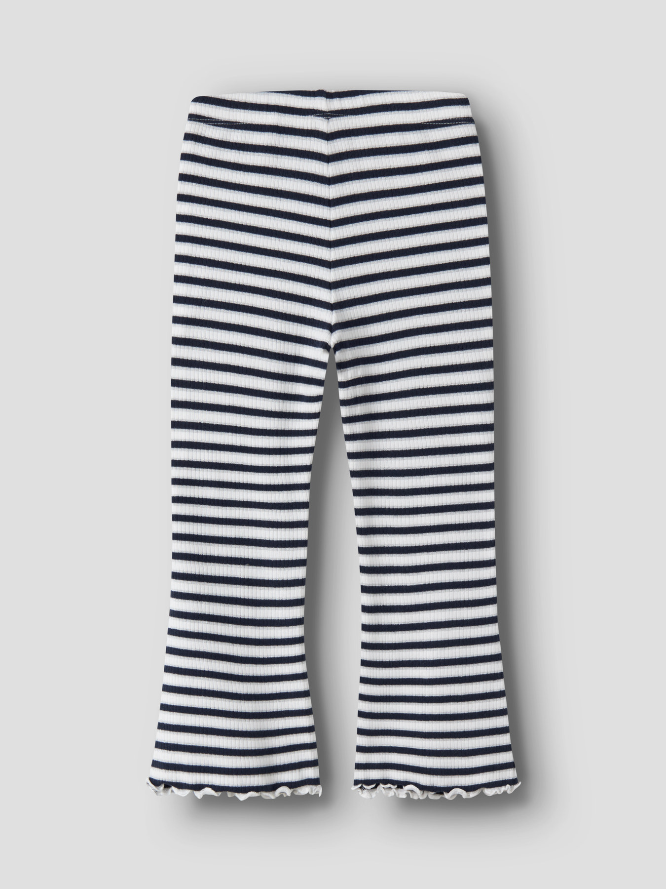 Super søde og bløde bukser fra Name It. De er med elastikkant i livet. Bukserne har en fin flæsekant forneden og glimmer detaljer.