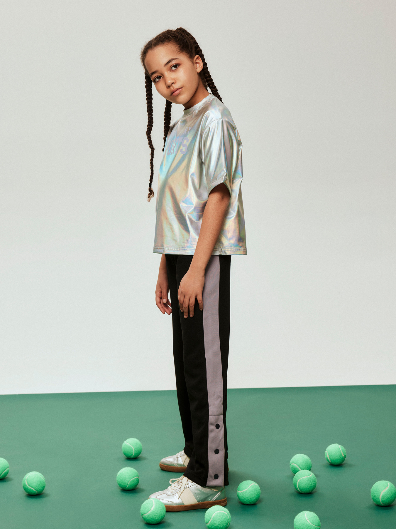 Et par virkelig fede bukser fra Name it med en sej kontraststribe ned langs benene og knapper forneden. Bukserne har brede ben og er i blødt, sporty look. Der er mulighed for at justere størrelsen indvendigt i taljen.
