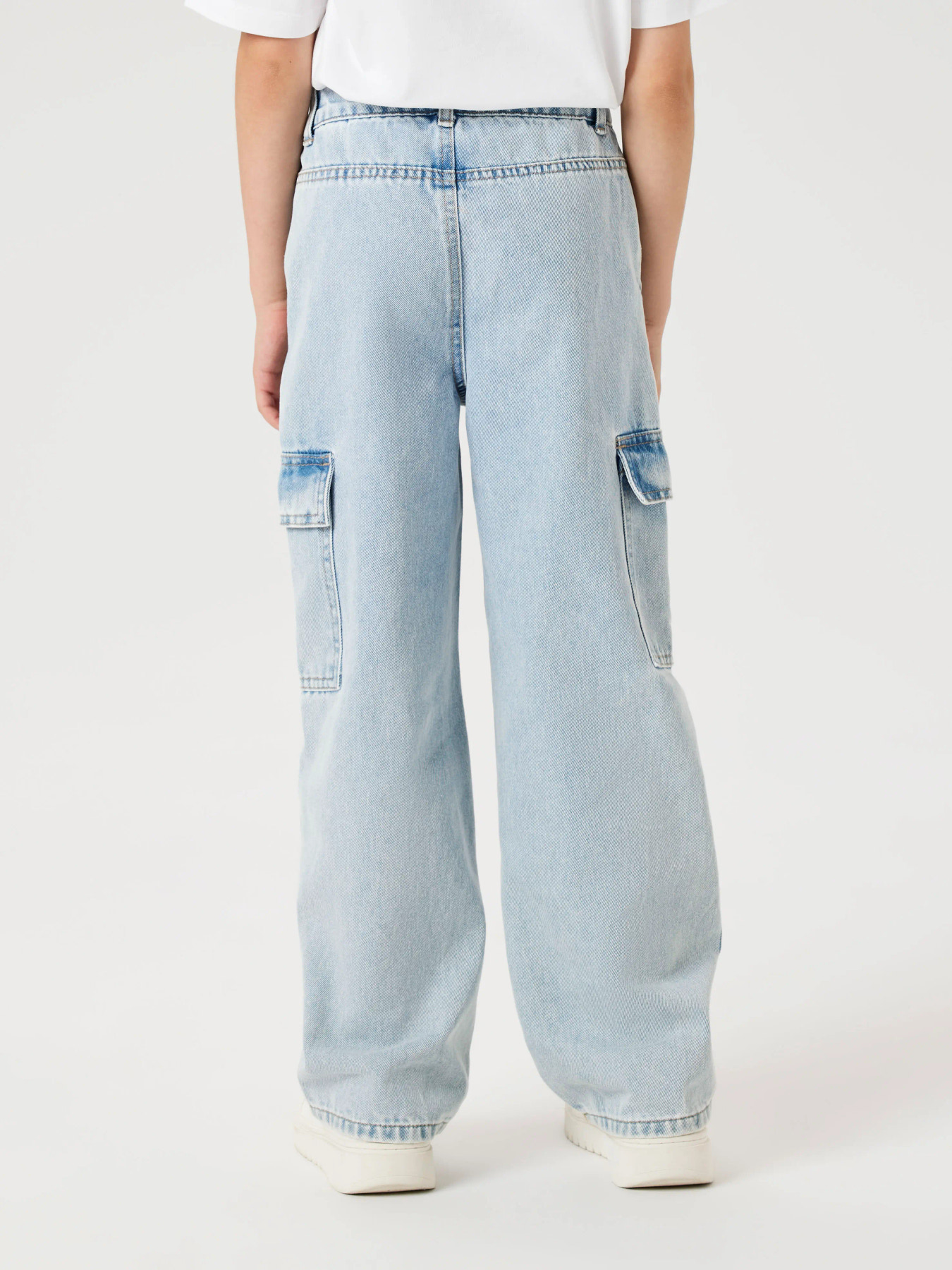 NAME IT Brede Cargo Jeans Rose Light Blue Bleached Denim