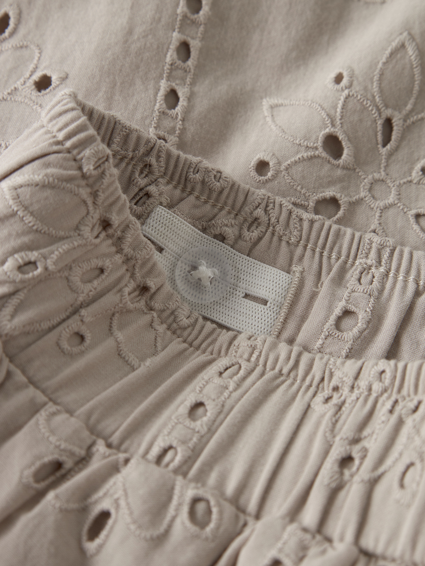 Giv dit barn komfort og et yndigt look med disse fine bukser i blødt materiale. De er lavet i vævet stof med et klassisk krydsmønster og en let struktureret overflade. Designet har justerbar talje, fine blondedetaljer og et loose fit.
