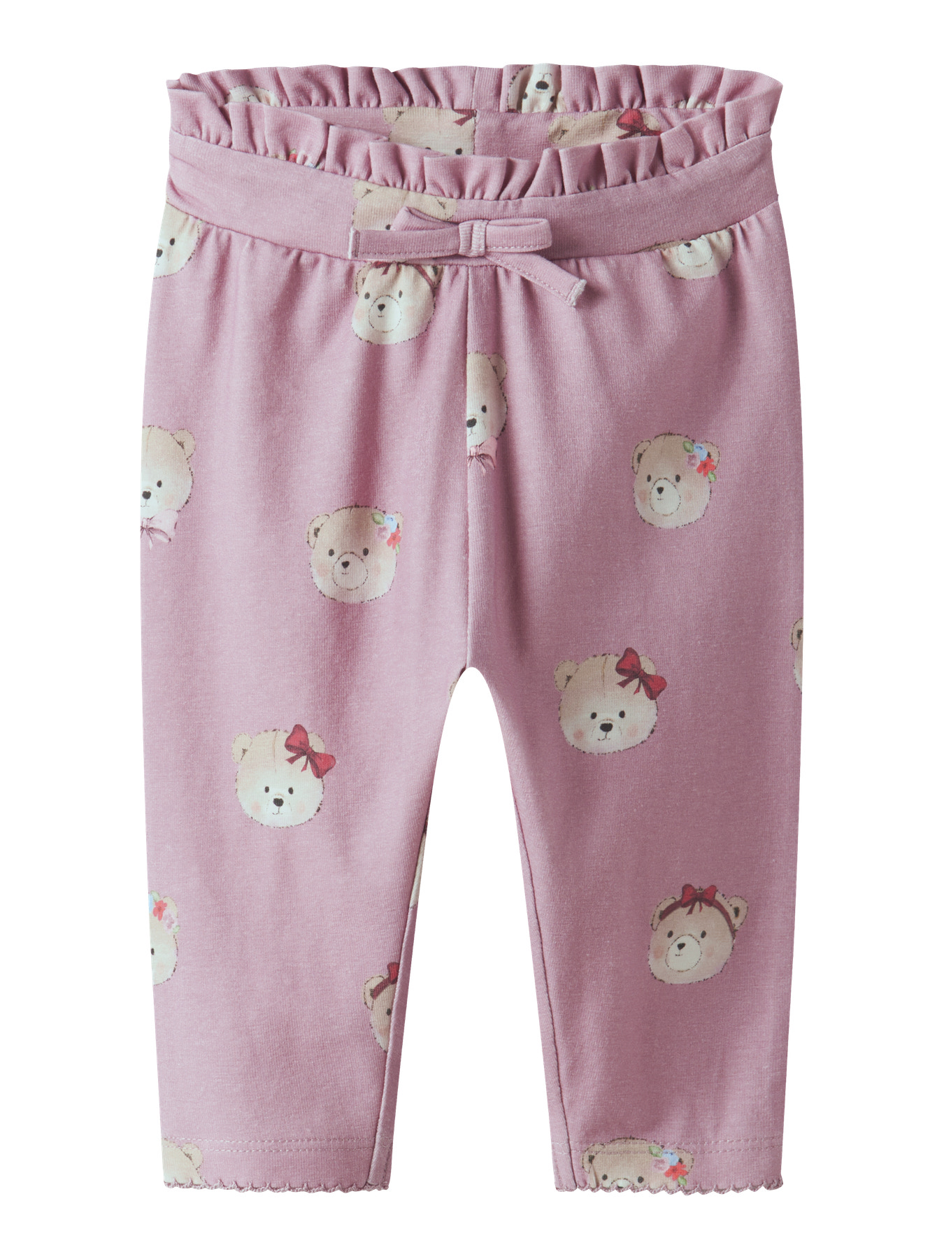 De sødeste bukser fra name it. De er i en sød farve og med bamse hoveder på. Bukserne har en fin flæsekant.