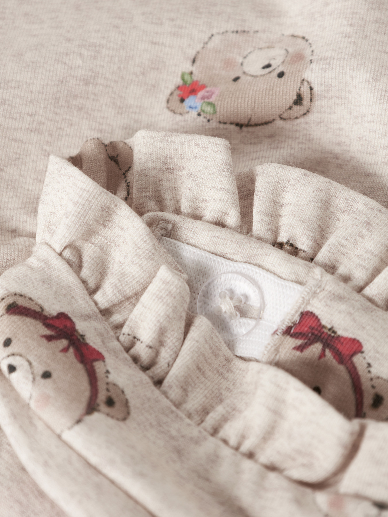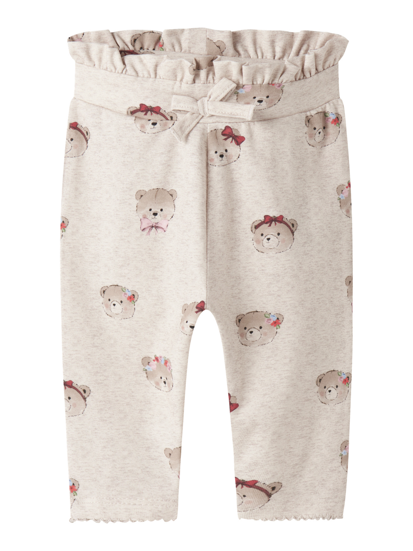 De sødeste bukser fra name it. De er i en sød farve og med bamse hoveder på. Bukserne har en fin flæsekant.