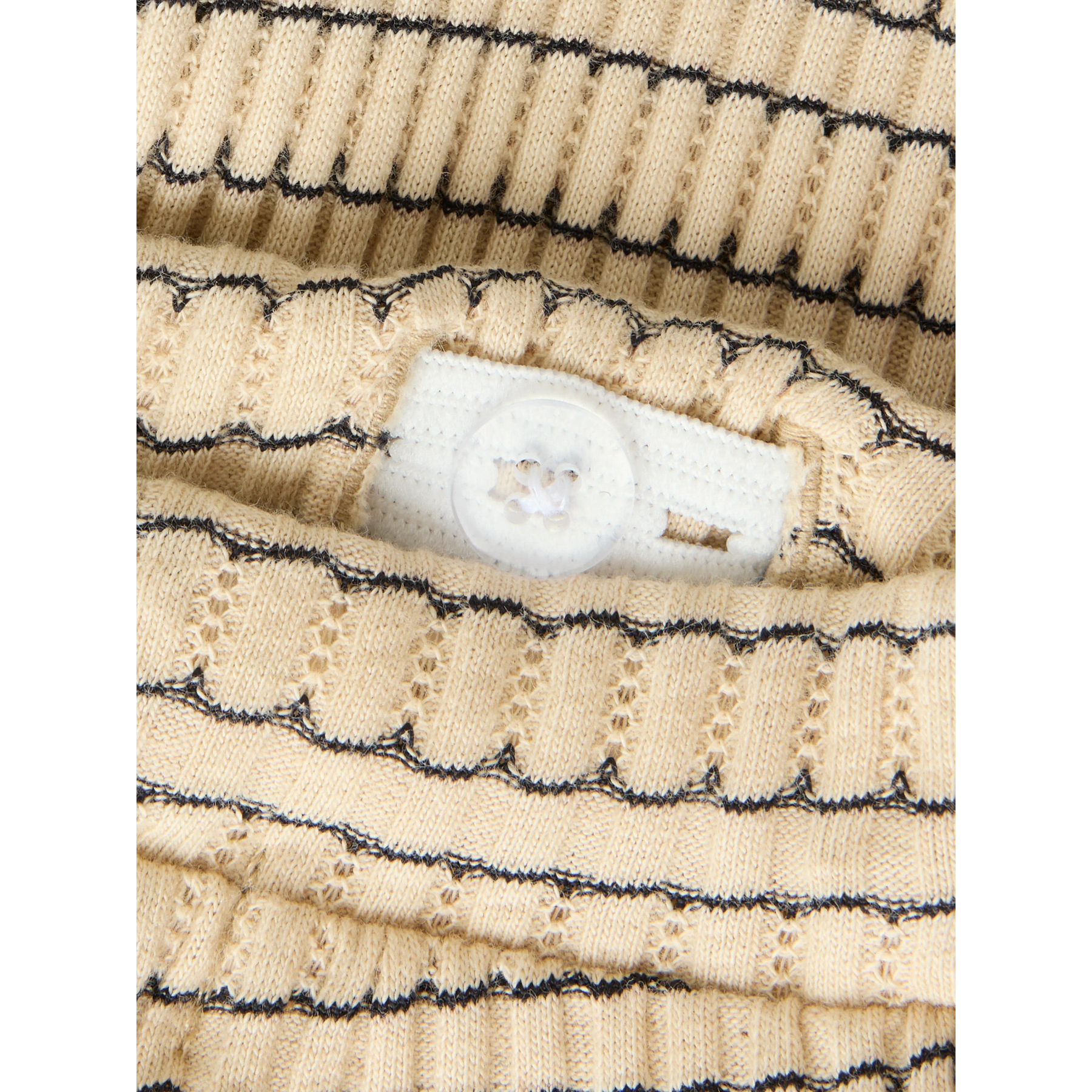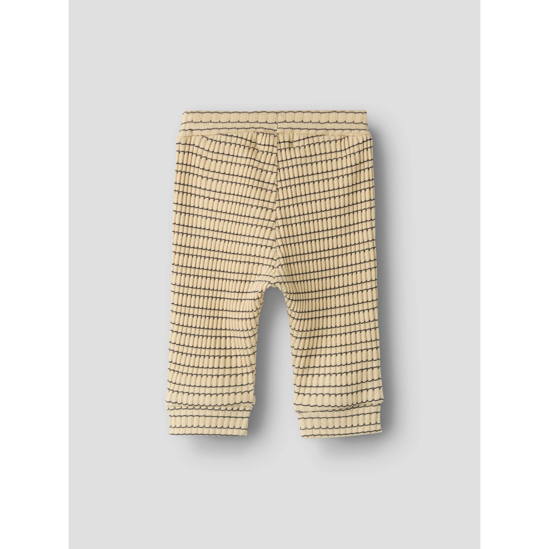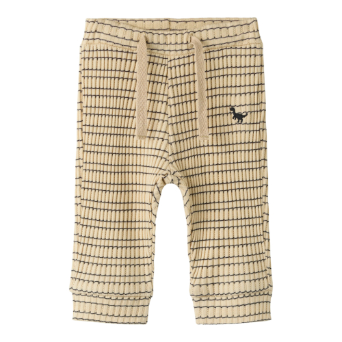 Et par bløde bukser med et fint ribstrikket mønster og en lille broderet dinosaur på låret. Ribstrikken sikrer god elasticitet og en blød følelse, der giver barnet komfort og bevægelsesfrihed.