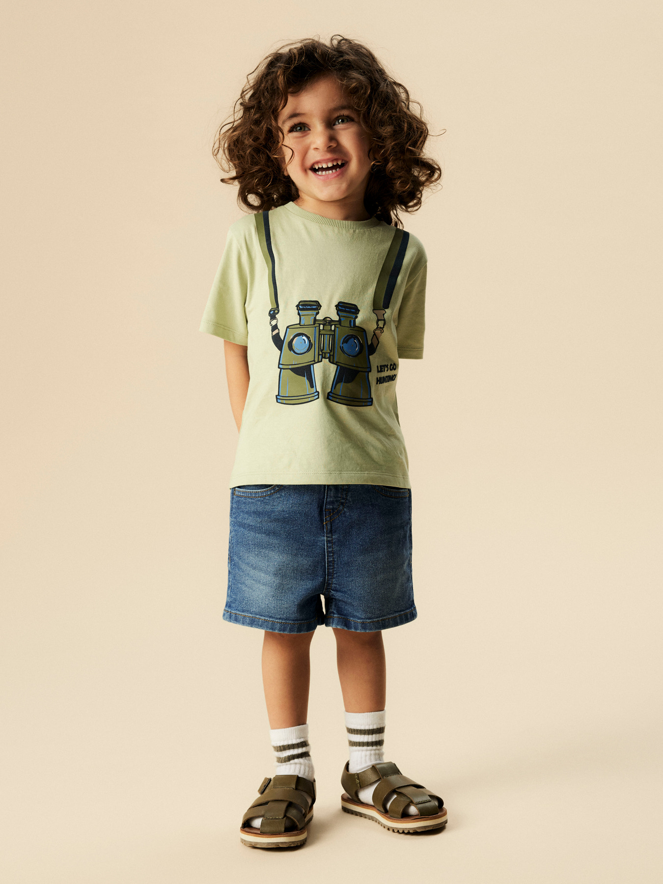 Cool denim er et must-have i ethvert barns garderobe, og disse denim shorts kombinerer et tidløst look med moderne detaljer. De er lavet i slidstærkt denim, som giver et unikt og klassisk udtryk. Shortsene har straight fit, justerbar talje samt praktisk lukning med trykknap. De er designet med både forlommer, baglommer og møntlomme.