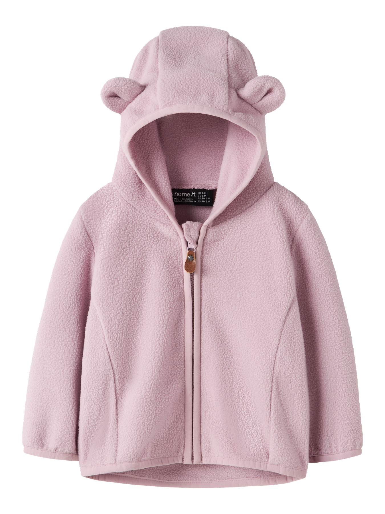 Den sødeste fleecejakke fra name it. Jakken er i en sød farve med små øre på.