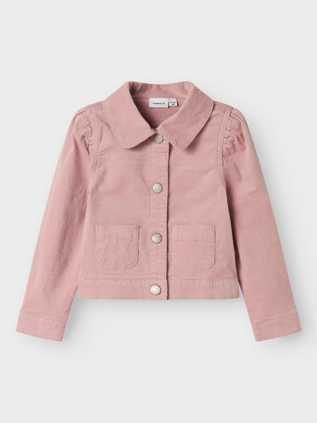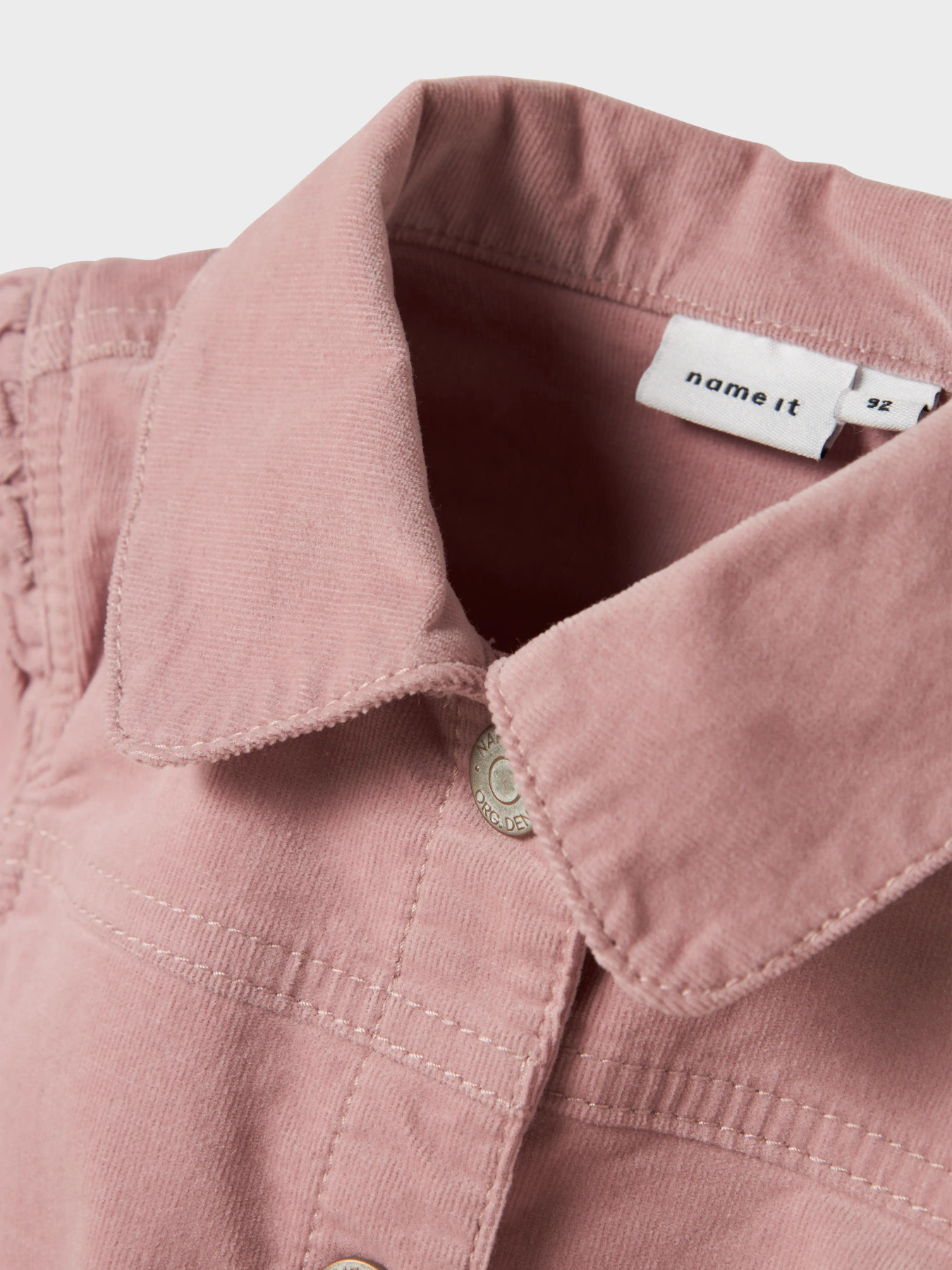 Mega cute jakke fra Name it i blød fløjls kvalitet. Den er i kort model og flot rosa farve. Den er med krave og trykknapper hele vejen ned.