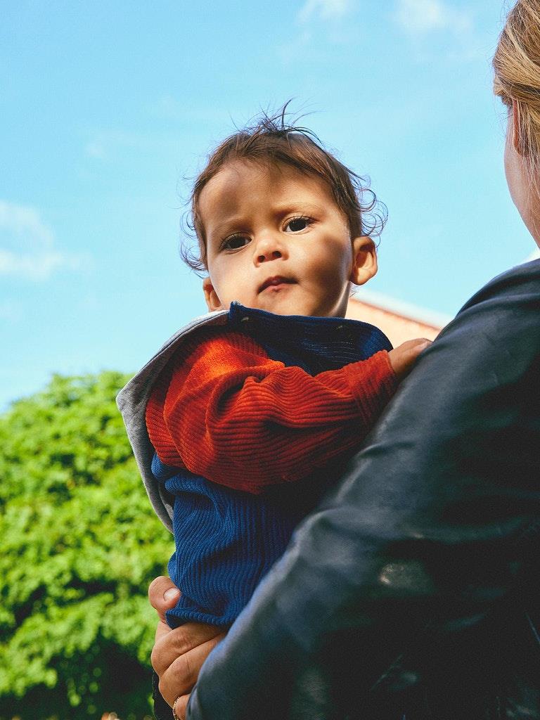 Fed fløjlsjakke fra Name It med fast hætte, seje kontrastfarver, knaplukning ned langs maven og lomme på brystet. Kan både bruges som en let jakke eller som sød cardigan.