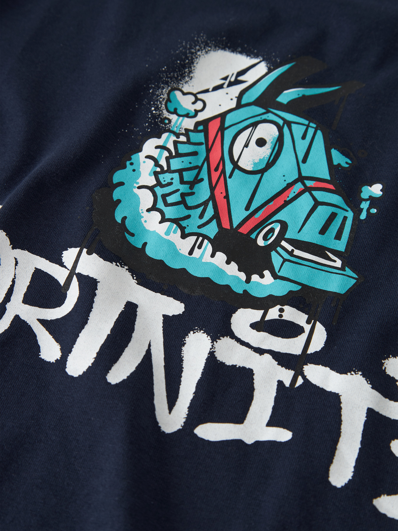 Den sejeste bluse fra name it. T-shirten er med et Fortnite print på maven, den er med rund hals.