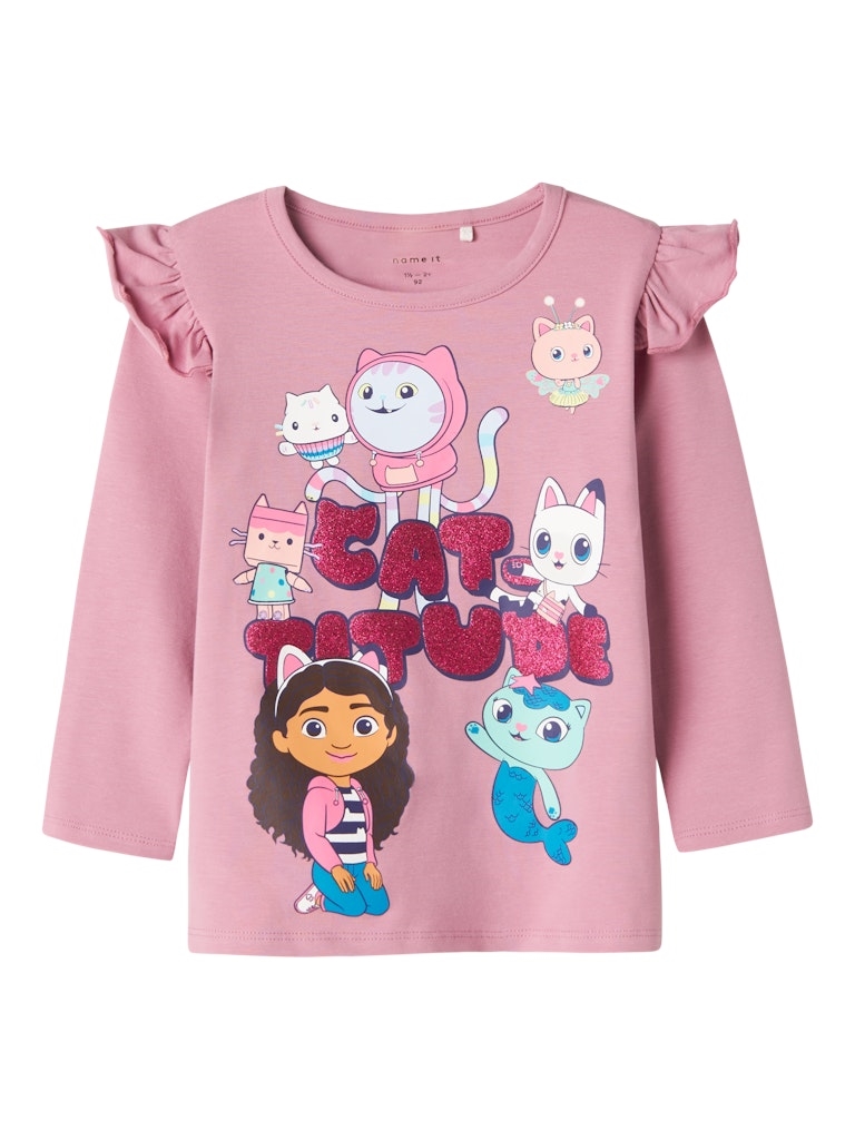 Mega sød langærmet bluse fra Name it med stort Gabby print på maven.
