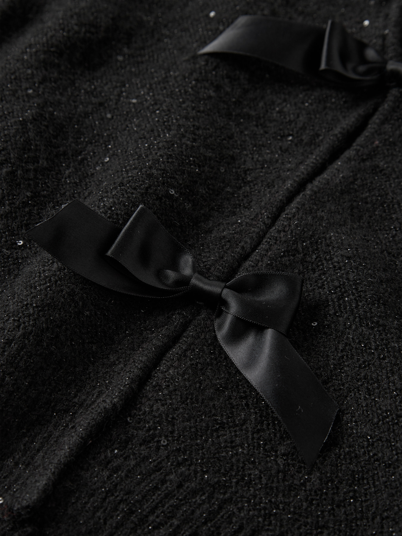Smukkeste striktræje fra Name It. Den er med super yndige satin sløjfer og små fine pailetter der giver det fineste skinnende "glimmer" look. Den er i blød og lækker kvalitet. Blusen kan bruges med sløjferne både foran og bagpå (mærket skal bare klippes ud).