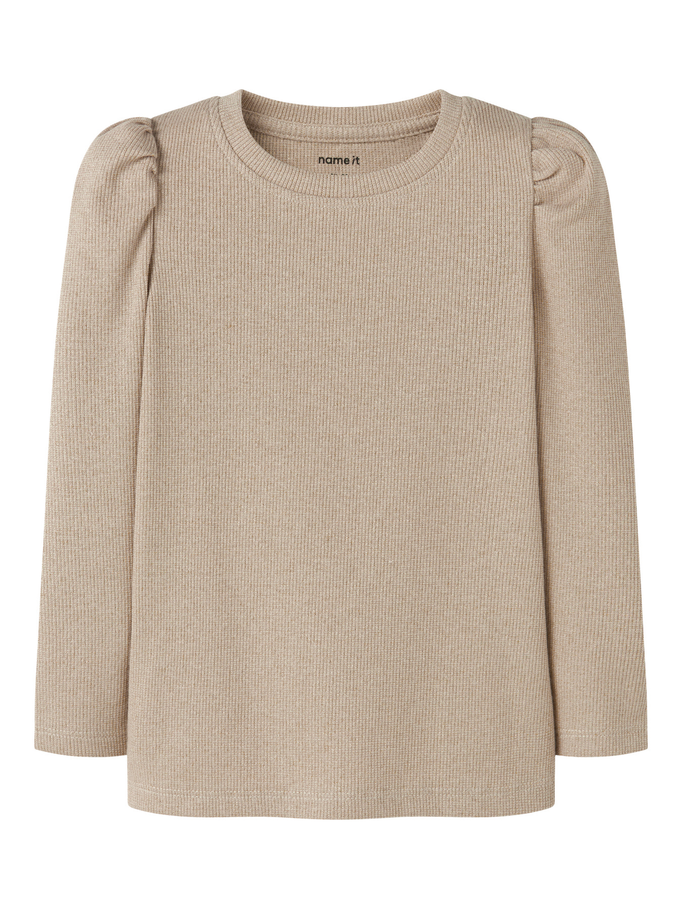 Super flot rib bluse fra Name It med glimmer detaljer i stoffet. Rund hals og lange ærmer.