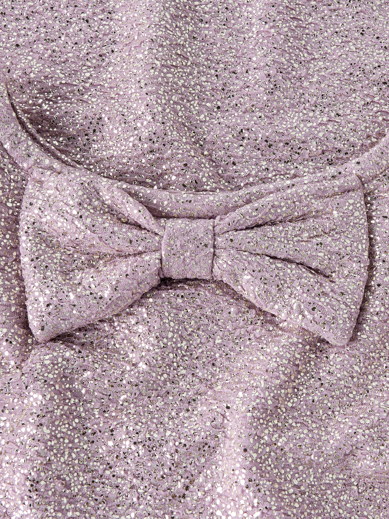 Smukkeste glimmer kjole fra Name it. Den er med lange ærmer og mega fin sløjfe detalje i ryggen. Den er i sødt snit og lækker blød kvalitet.