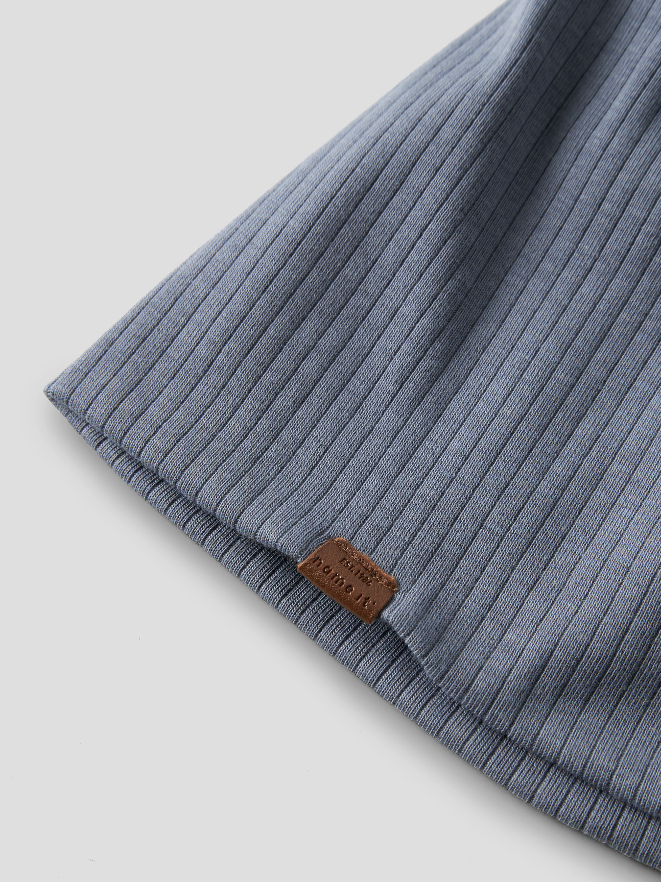 Giv dit barns outfit et ekstra pift med en sjov og praktisk beanie, der tilfører et stilfuldt touch. Huens ribstrik har et lodret, stribet mønster og god elasticitet, som sikrer en behagelig pasform og et tidløst udtryk. Det lille label-detalje fuldender designet og giver et moderne finish.