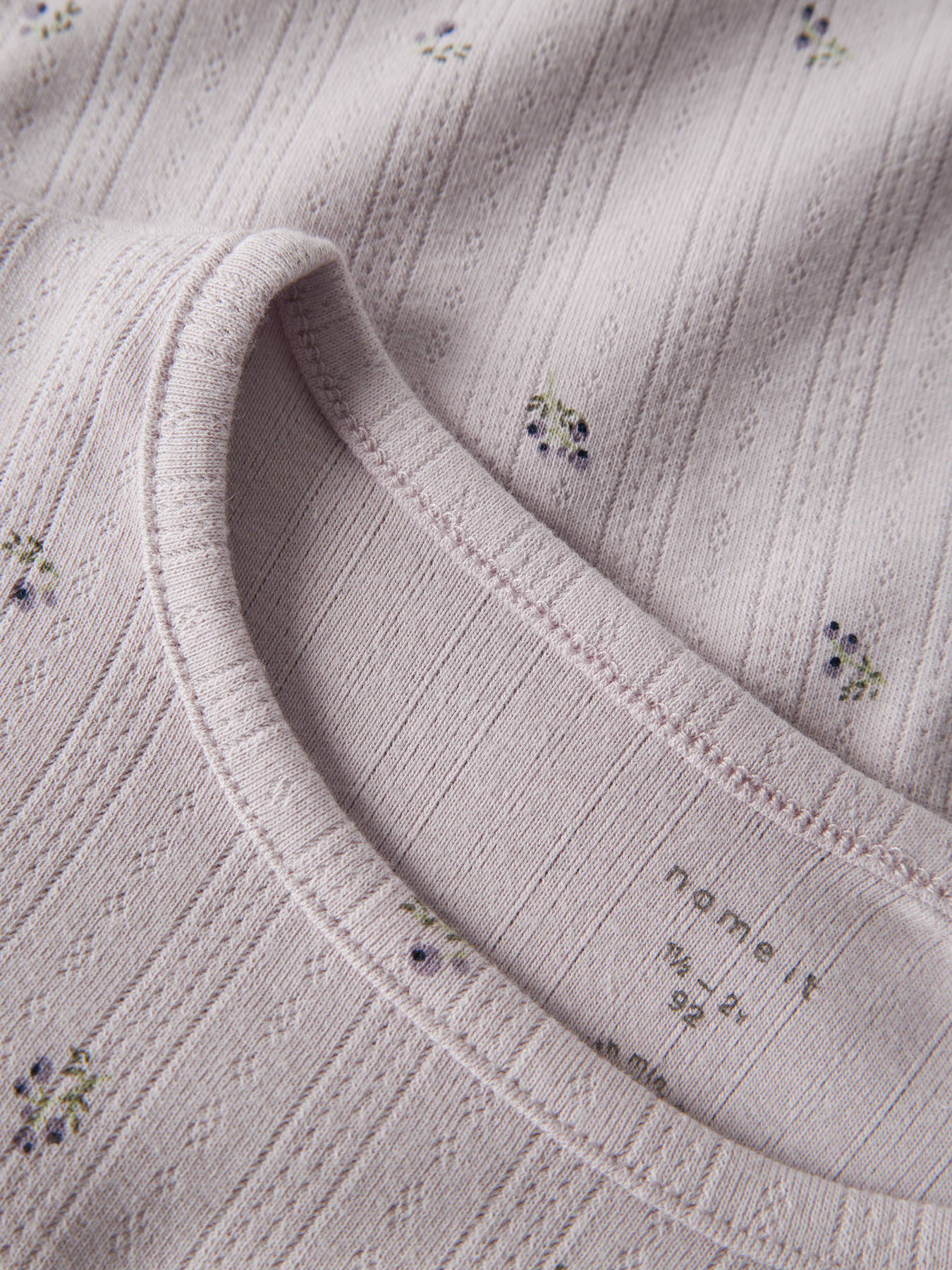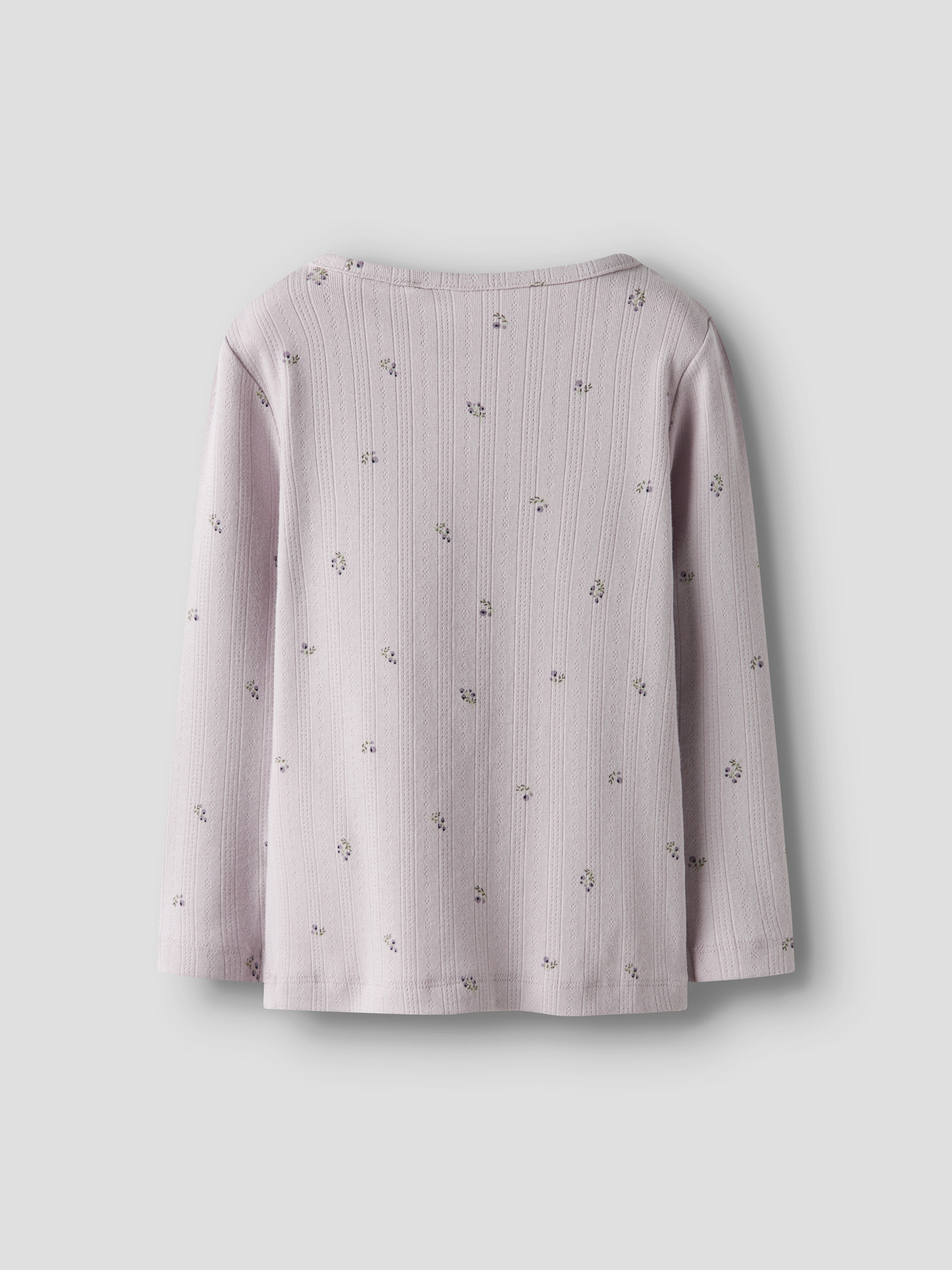 En yndig bluse med lange ærmer fra Name it i en helt lys lilla og med bærprint. Blusen er i det smukkeste hulmønster.