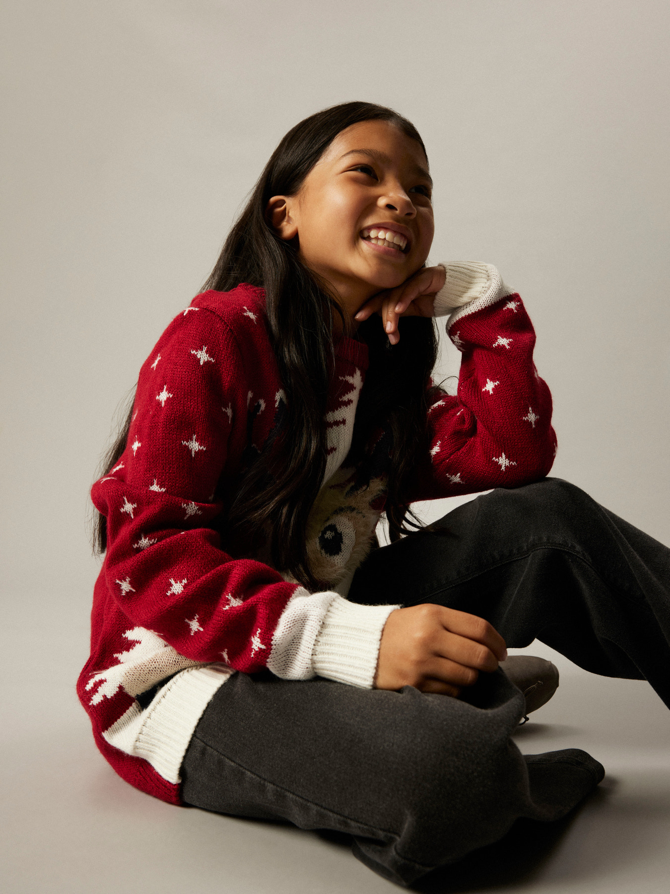 Super sød jule sweatshirt fra Name It med en sød rudolf på maven.