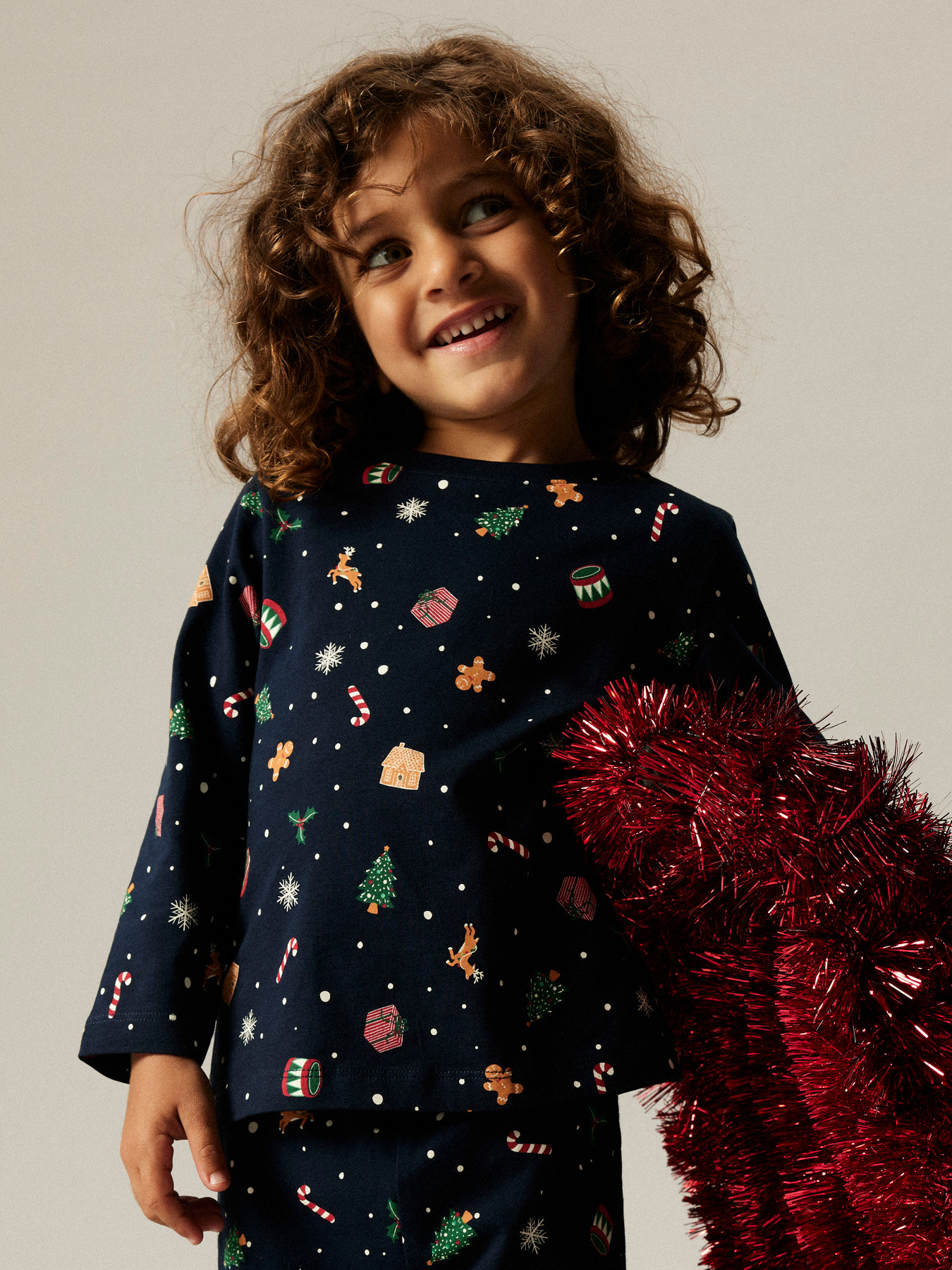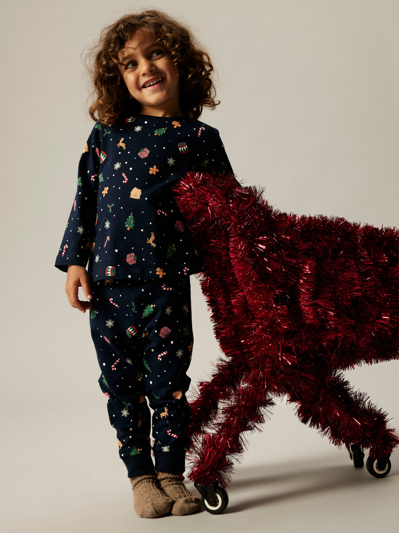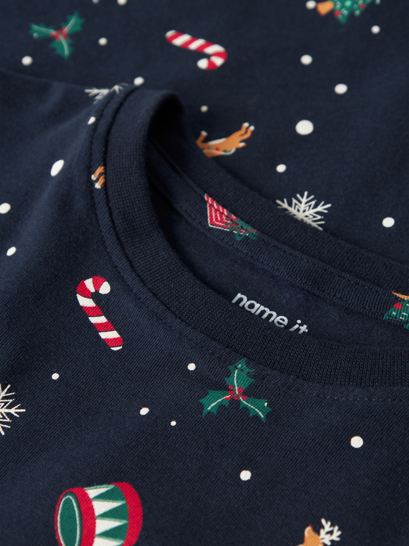Gør december ekstra magisk med årets jule nattøj fra Name It. Sættet består af en langærmet bluse og matchende bukser. Den elastiske linning i bukserne sikre en god pasform.