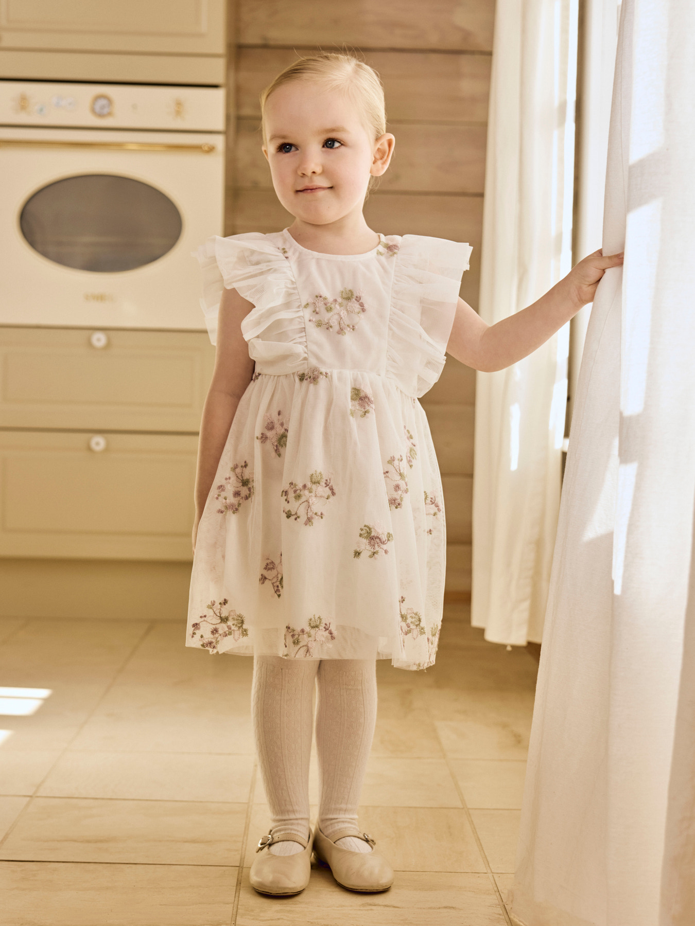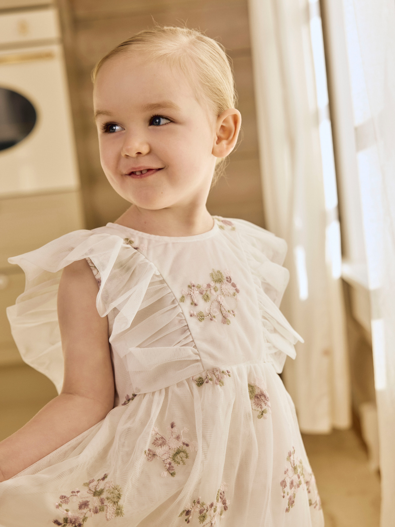 Super smuk kortærmet kjole fra Name It med blomsterprint over det hele.