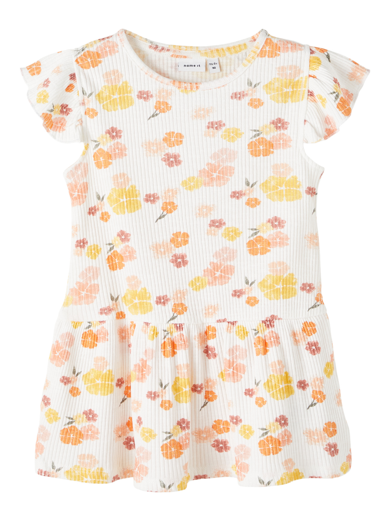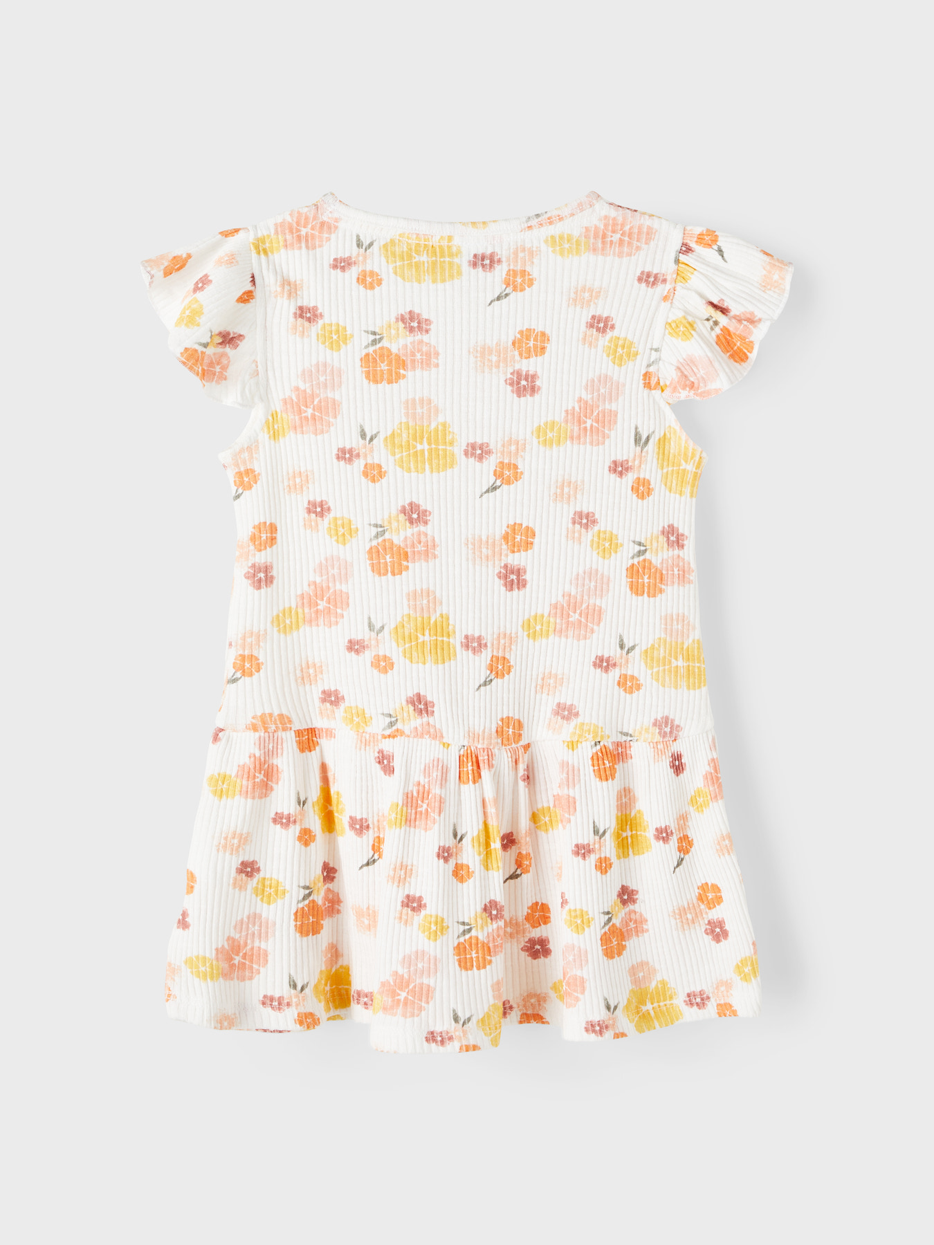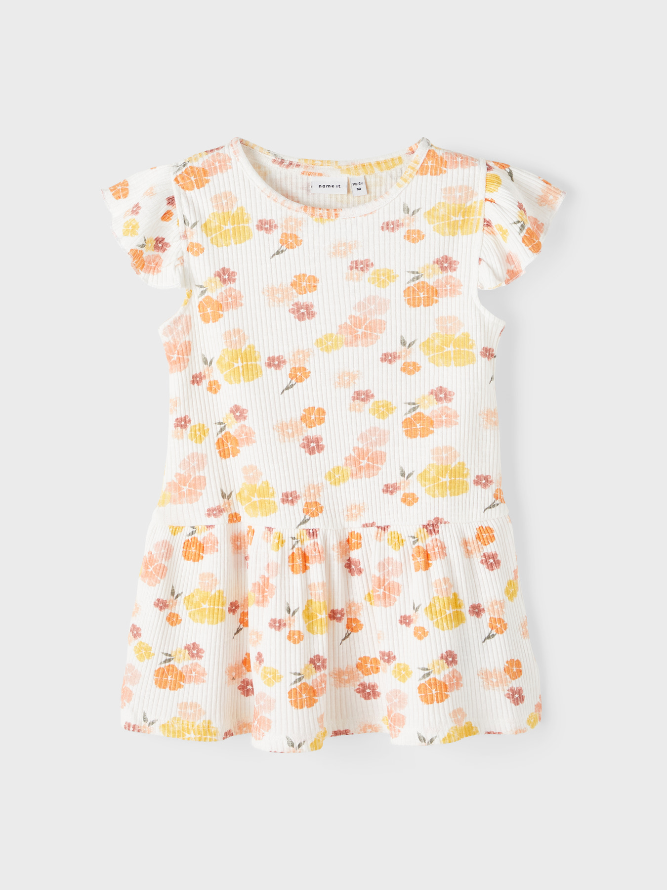 Skøn kortærmet rib kjole fra Name It med et smukt blomstret print over det hele.