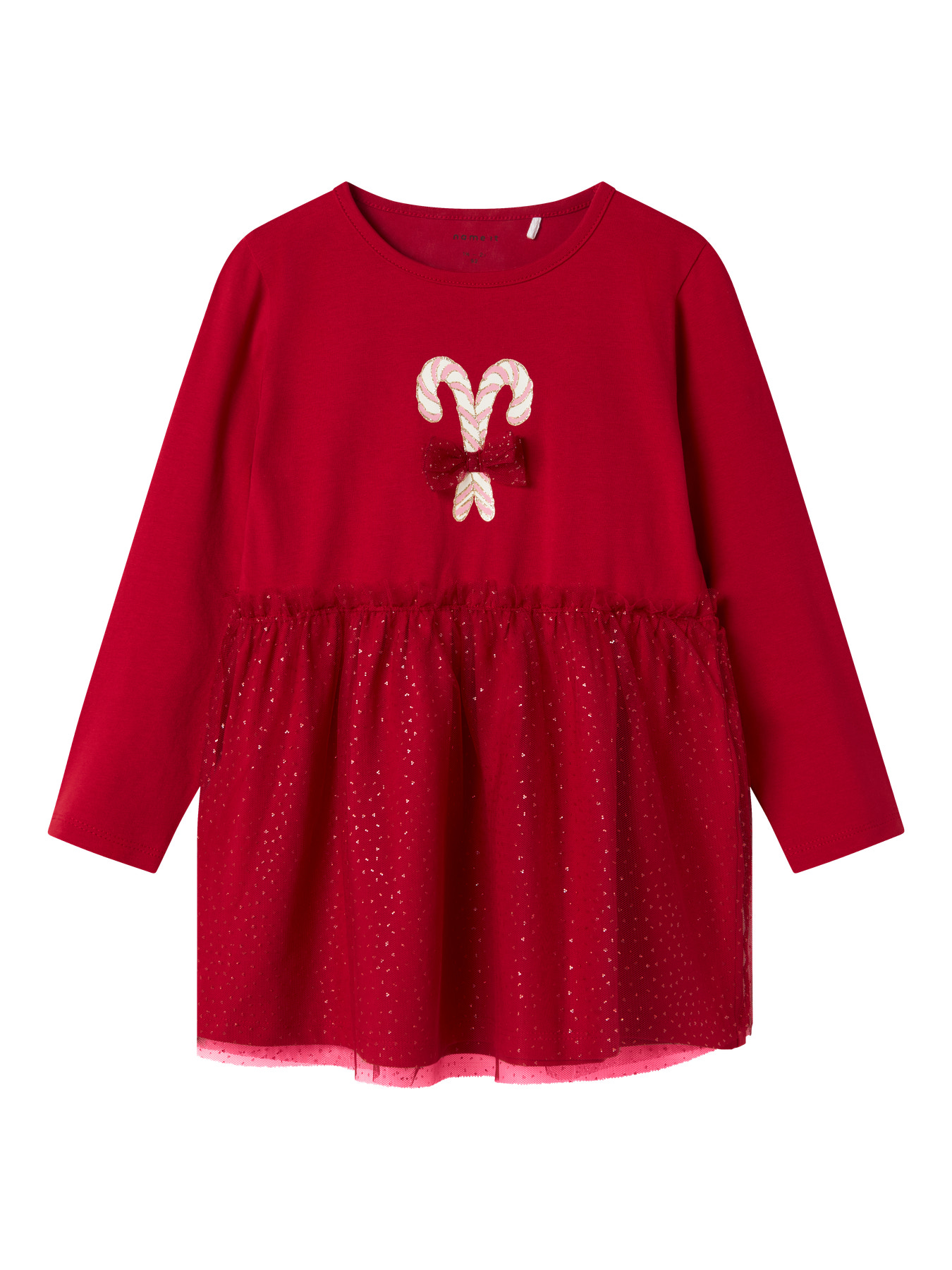 Den sødeste jule kjole fra name it. Kjolen er med søde julestokke og tyl.