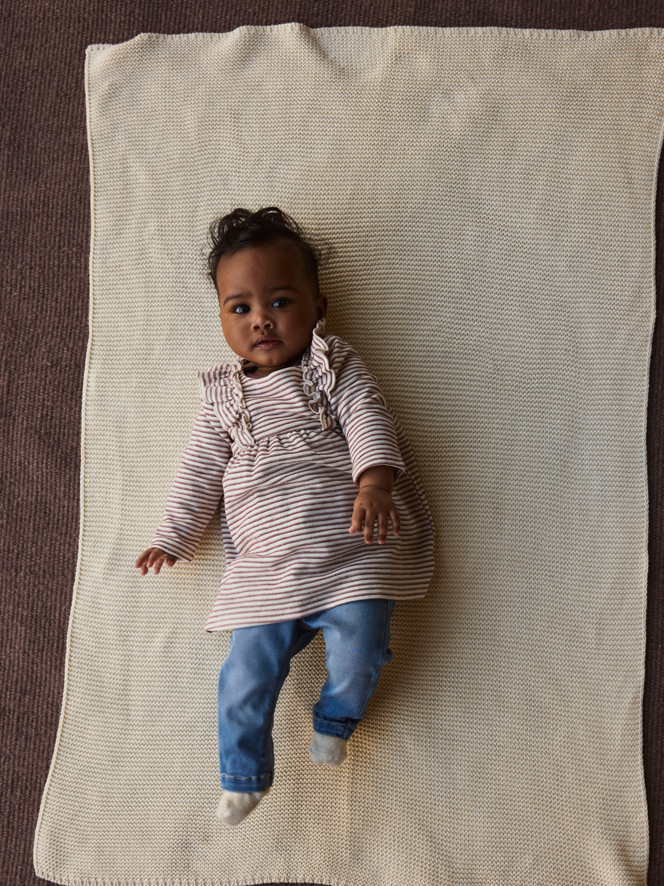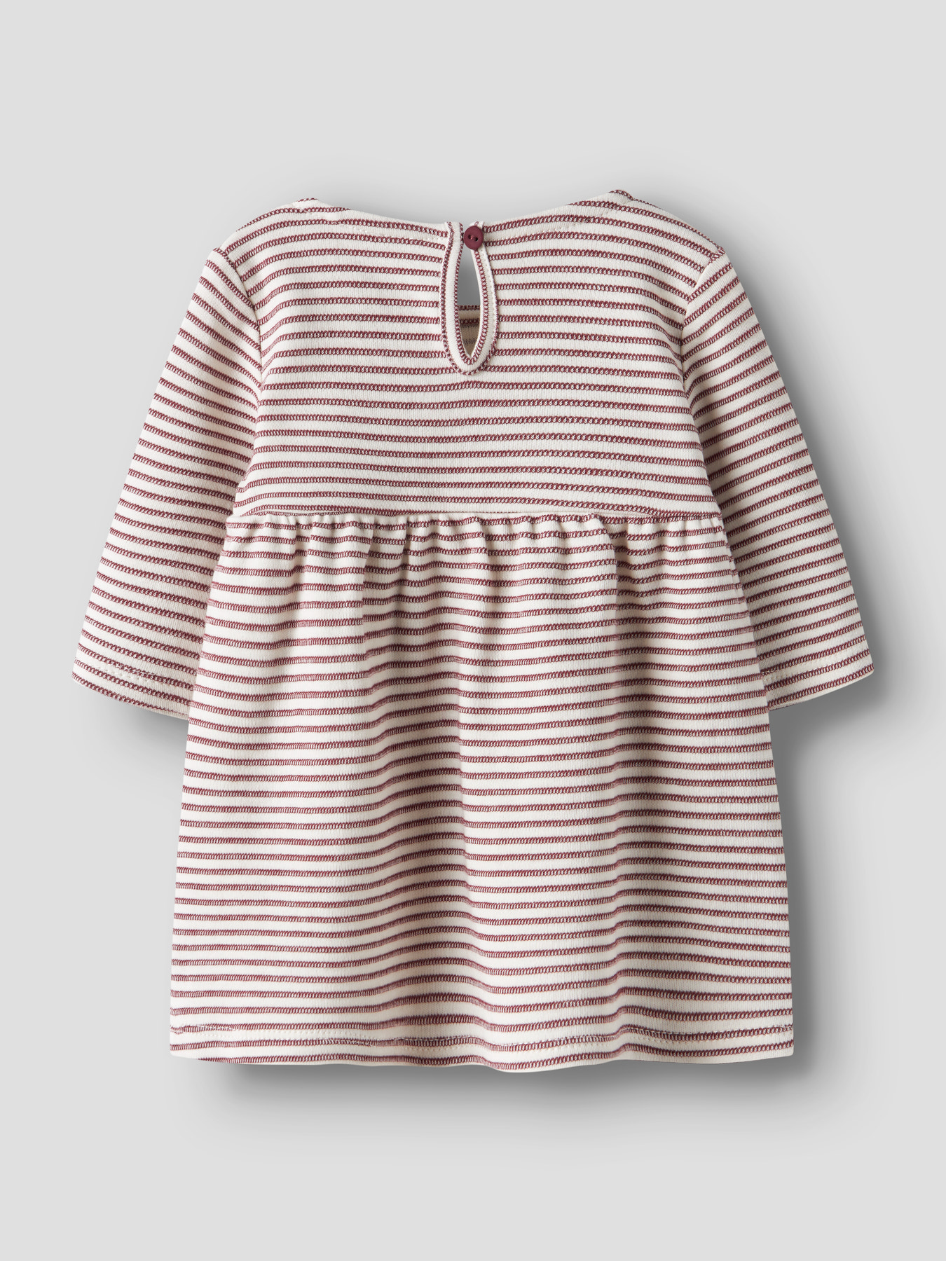 Den smukkeste babykjole fra name it. Den er med de fineste striber og nogen søde flæser. Kjolen lukkes med en knap bagpå.
