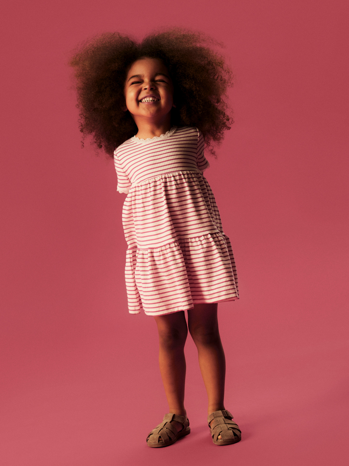 Opfrisk dit barns garderobe med en smuk og cool kjole, der passer perfekt til enhver sæson og anledning. Ribstrik har et lodret, stribet mønster og god elasticitet, som giver en behagelig pasform og et tidløst look.