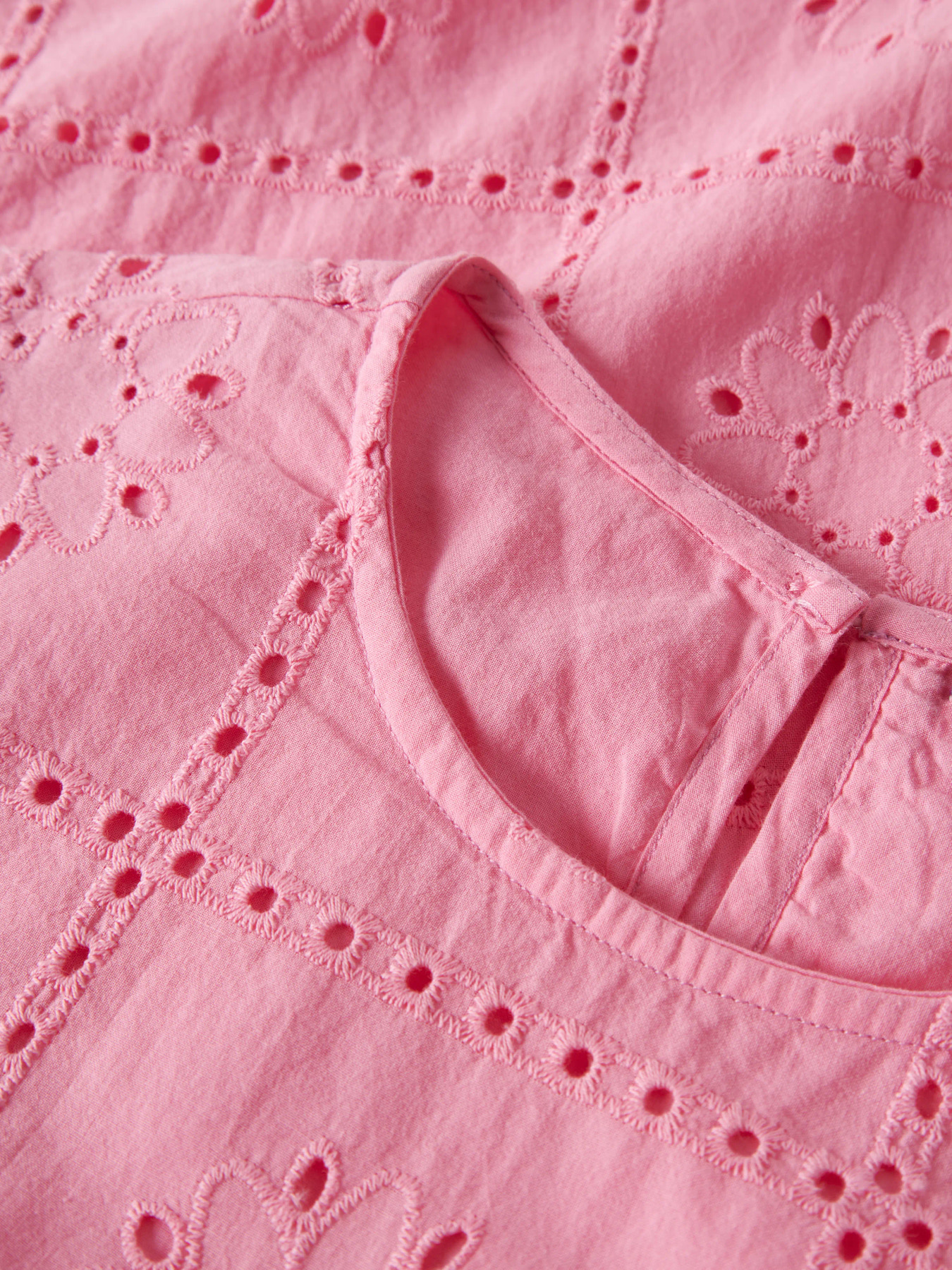 Opdater dit barns garderobe med en fin kjole, der passer til alle sæsoner og anledninger. Den er lavet i vævet stof med et klassisk krydsmønster og en let struktureret overflade. Designet har rund hals, korte ærmer, knap- og løkkelukning samt fine blondedetaljer. Regular fit.