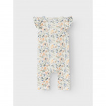 Den fineste heldragt fra name it. Den er med korte ærmer og lange ben og er lavet i en blød og lækker kvalitet. Dragten er i bred rib og med det fineste blomsterprint over det hele og har en fin flæsekant på ærmerne. Den har en trykknapper hele vejen ned foran så den nemt kan åbnes og lukkes og tages af og på.