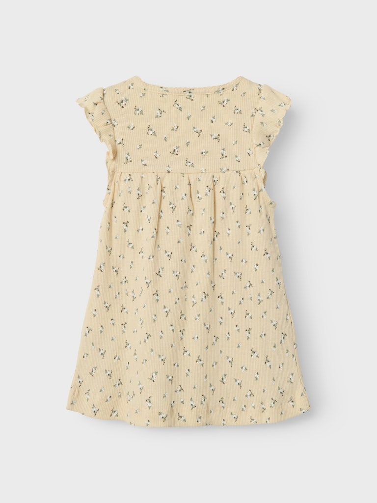 Den sødeste body kjole fra name it. Den er med korte ærmer, er rund i halsen og er lavet i en blød og lækker kvalitet. Den er i den fineste gule farve og med et sødt blomster print.
