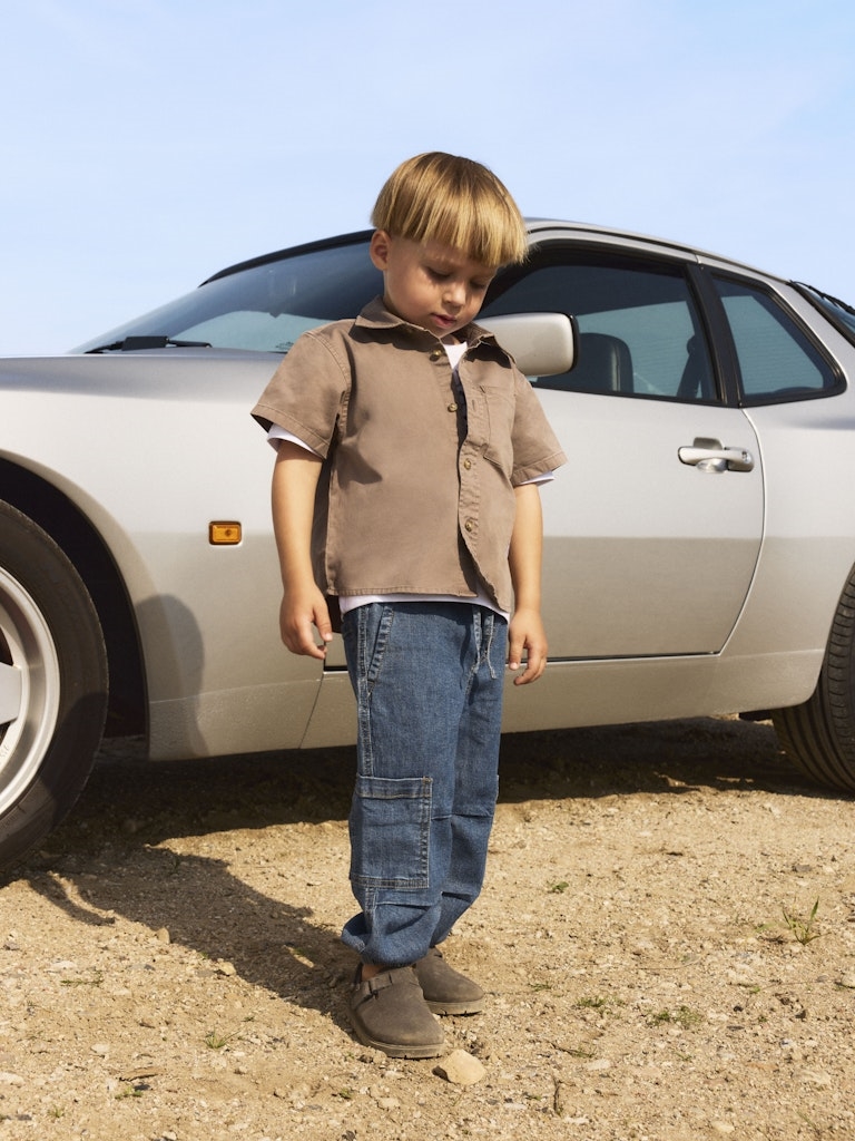 Mega fed skjorte fra Name it. Skjorten er med korte ærmer og knapper hele vejen ned, den er mega fin både lukket eller stående åben med en t-shirt under. Den er i flot brun farve..