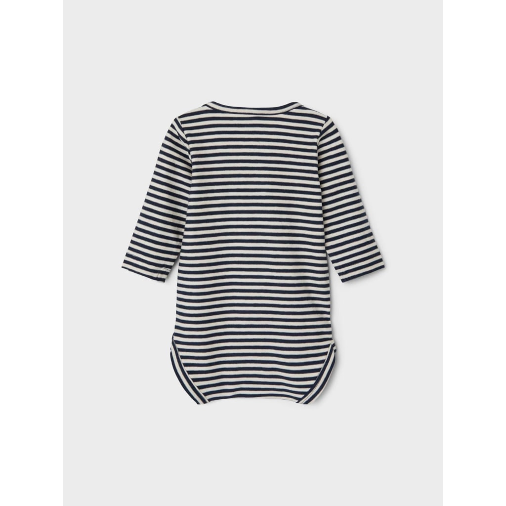 Mega fin body fra name it. Den er med lange ærmer og har en knapbjælke ved halsen. Den er lavet i den blødeste kvalitet og så er den med de fineste striber. Den har en trykknap ved skulderen så den er nemmere at få over hovedet, og så har den tre trykknapper ved bleen.