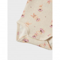 Super sød body fra name it. Den er med lange ærmer, er rund i halsen og er lavet i en blød og lækker kvalitet. Den er med et sødt mønster over det hele og så er den med trykknapper ved skulderen og ved bleen.