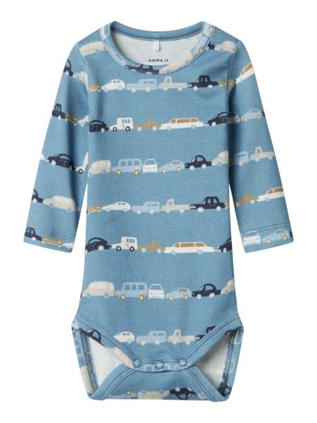 Lækker og virkelig blød body fra Name it med forskellige biler på. Bodyen er med trykknapper ved skulderen og ved bleen.