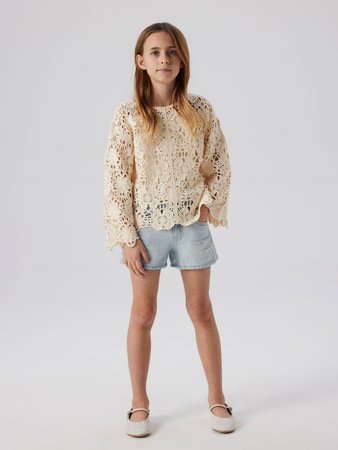 NAME IT Langærmet Strik Blonde Bluse Fenrun Cloud Dancer