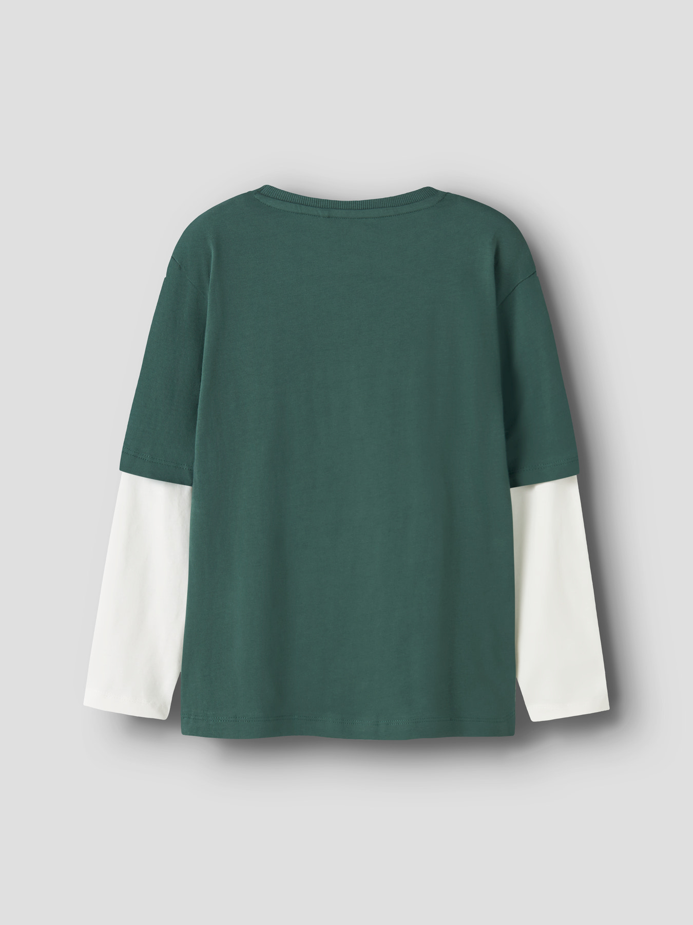 Cool langærmet bluse fra Name it. Blusen har et t-shirt ærme med et langt ærme inden under, rund hals og et lille tryk på det ene bryst. Blusen er i et lækkert, let materiale, der gør, at den er behagelig at have på.