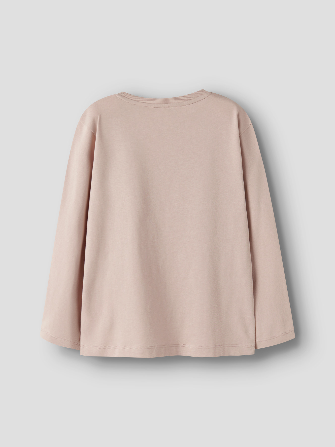 Mega sej langærmet bluse fra name it. Den er i et helt simpelt look, med lille print på brystet.