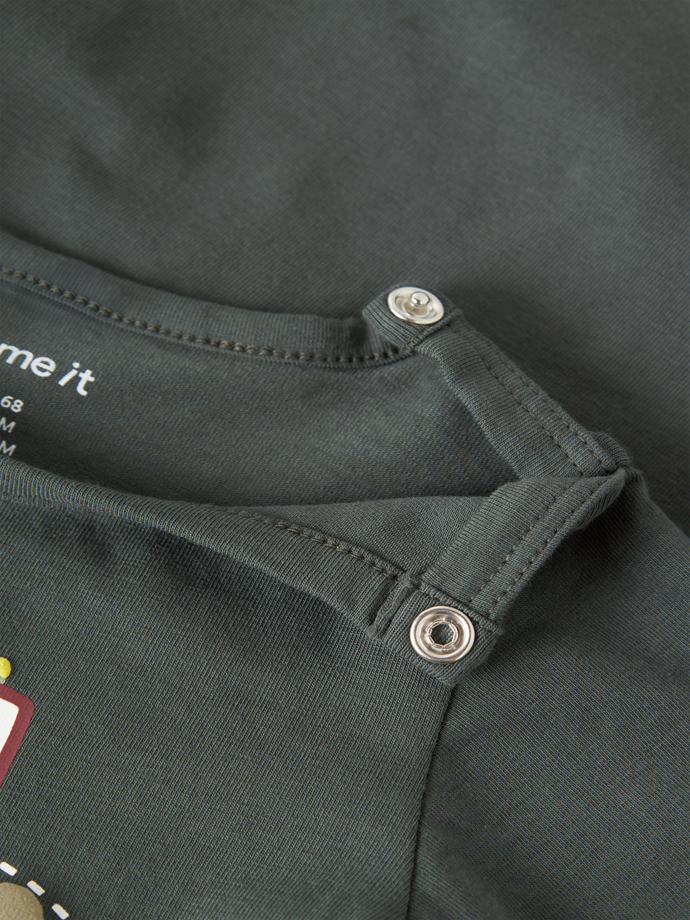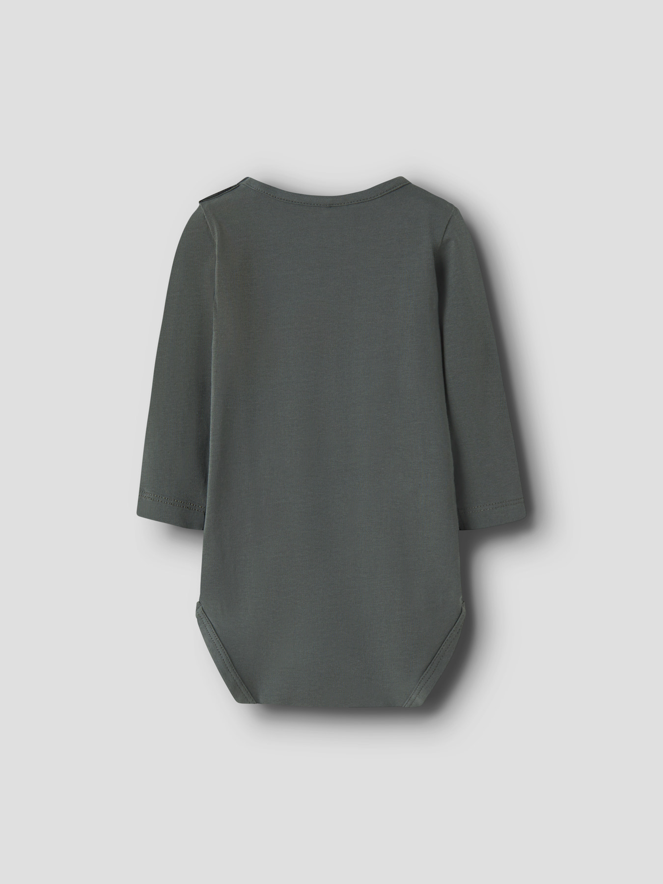 En virkelig fin og dejligt blød body med lange ærmer Name it. Bodyen har seje biler på maven og lukkes med trykknapper ved bleen.
