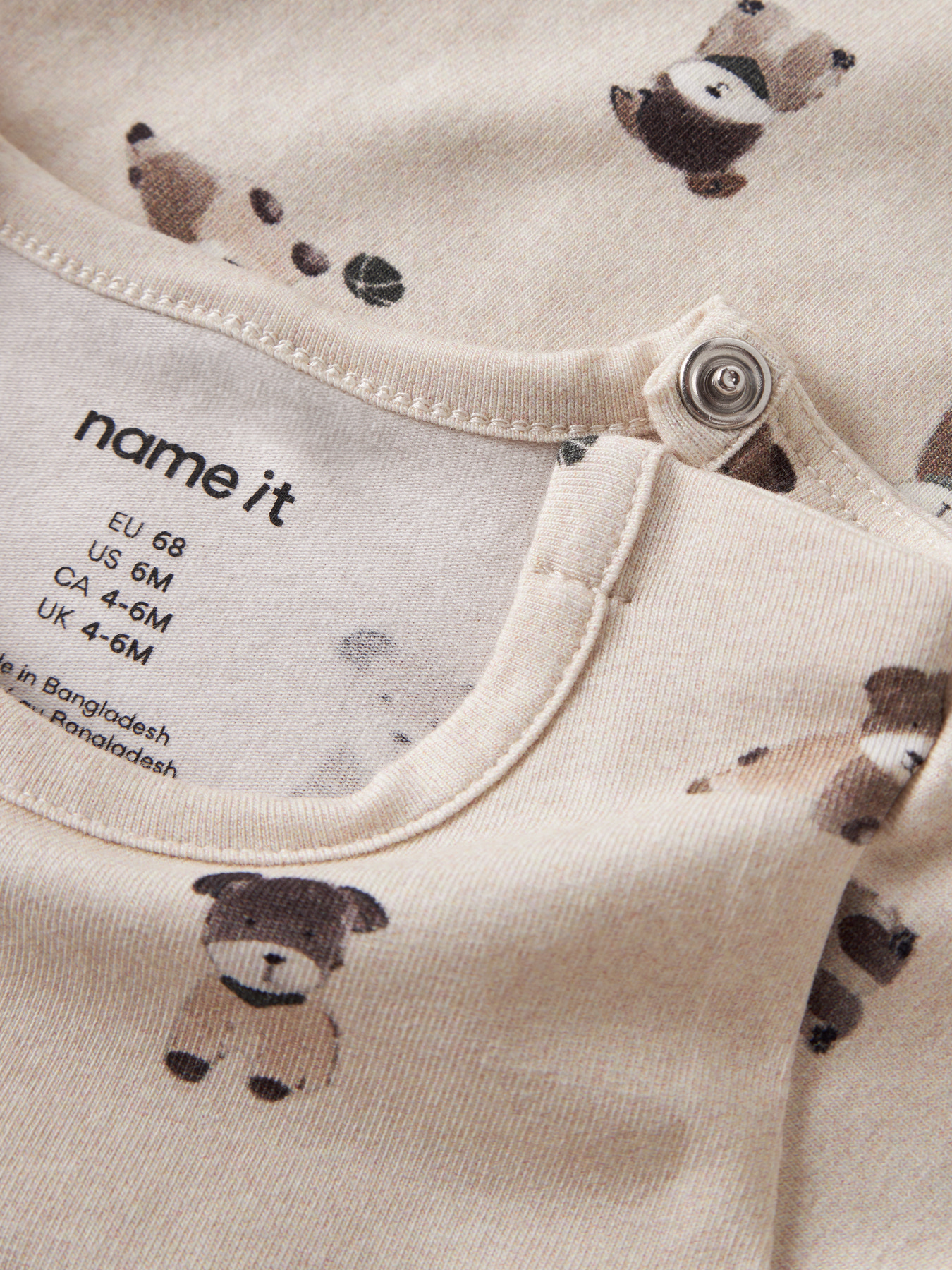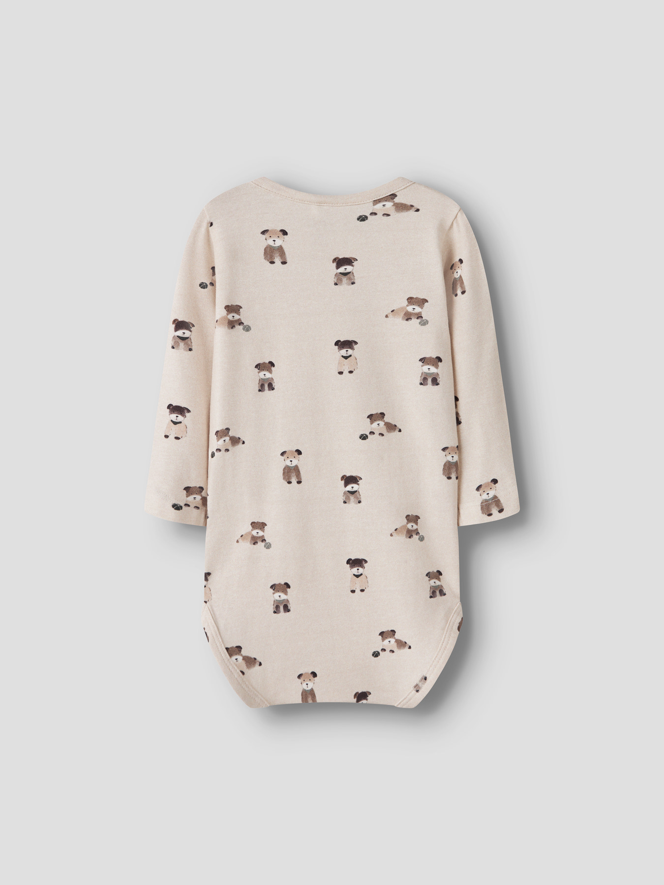 En virkelig fin body med lange ærmer og små hunde på fra Name it. Bodyen er dejlig blød og lukkes med trykknapper ved bleen.