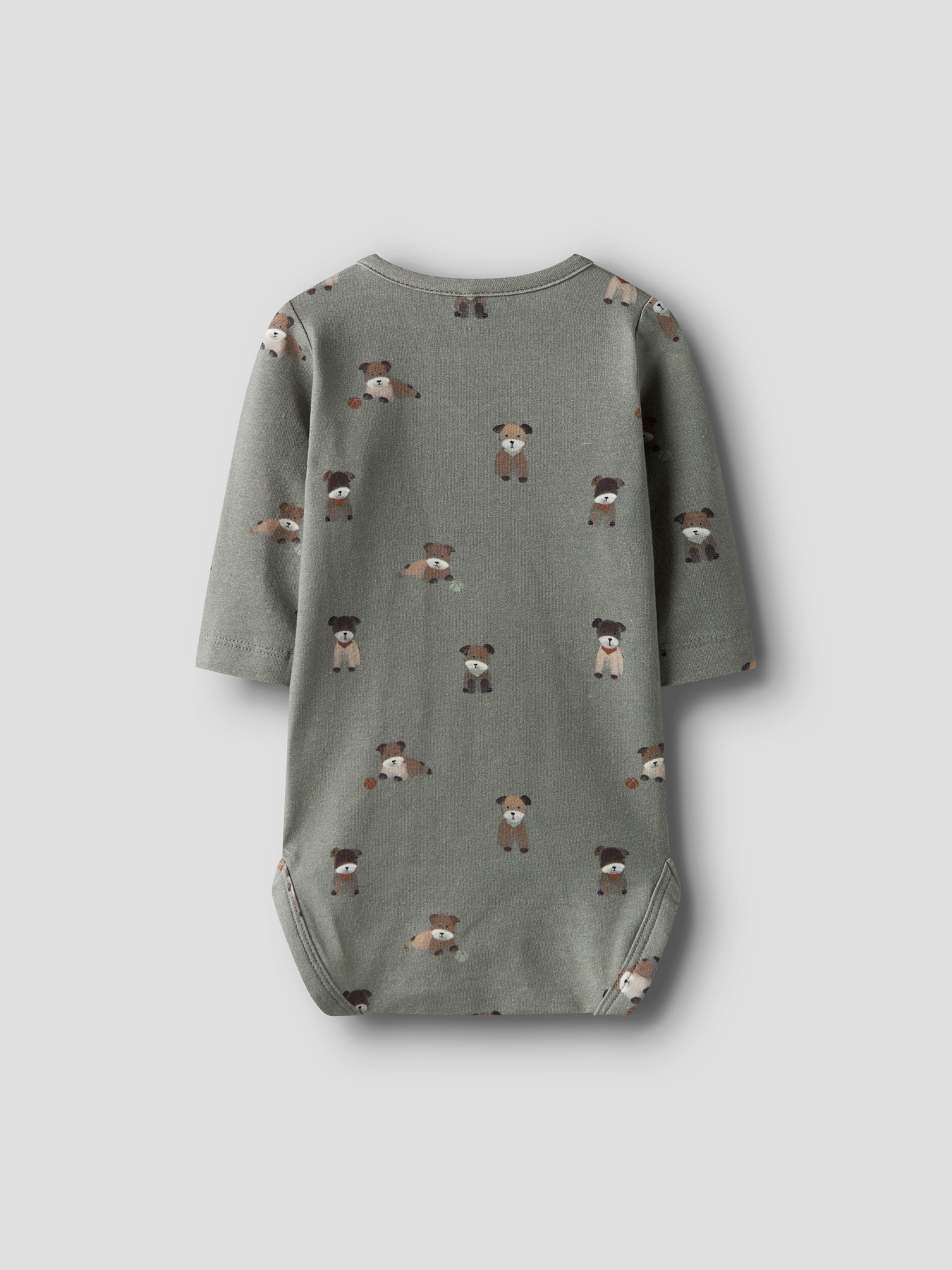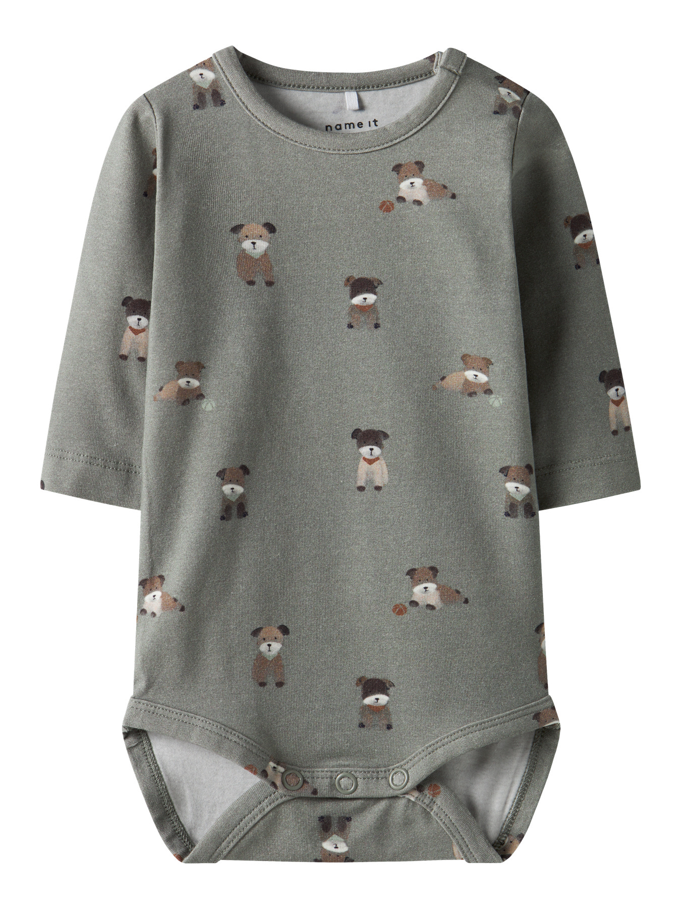 En virkelig fin body med lange ærmer og små hunde på fra Name it. Bodyen er dejlig blød og lukkes med trykknapper ved bleen.