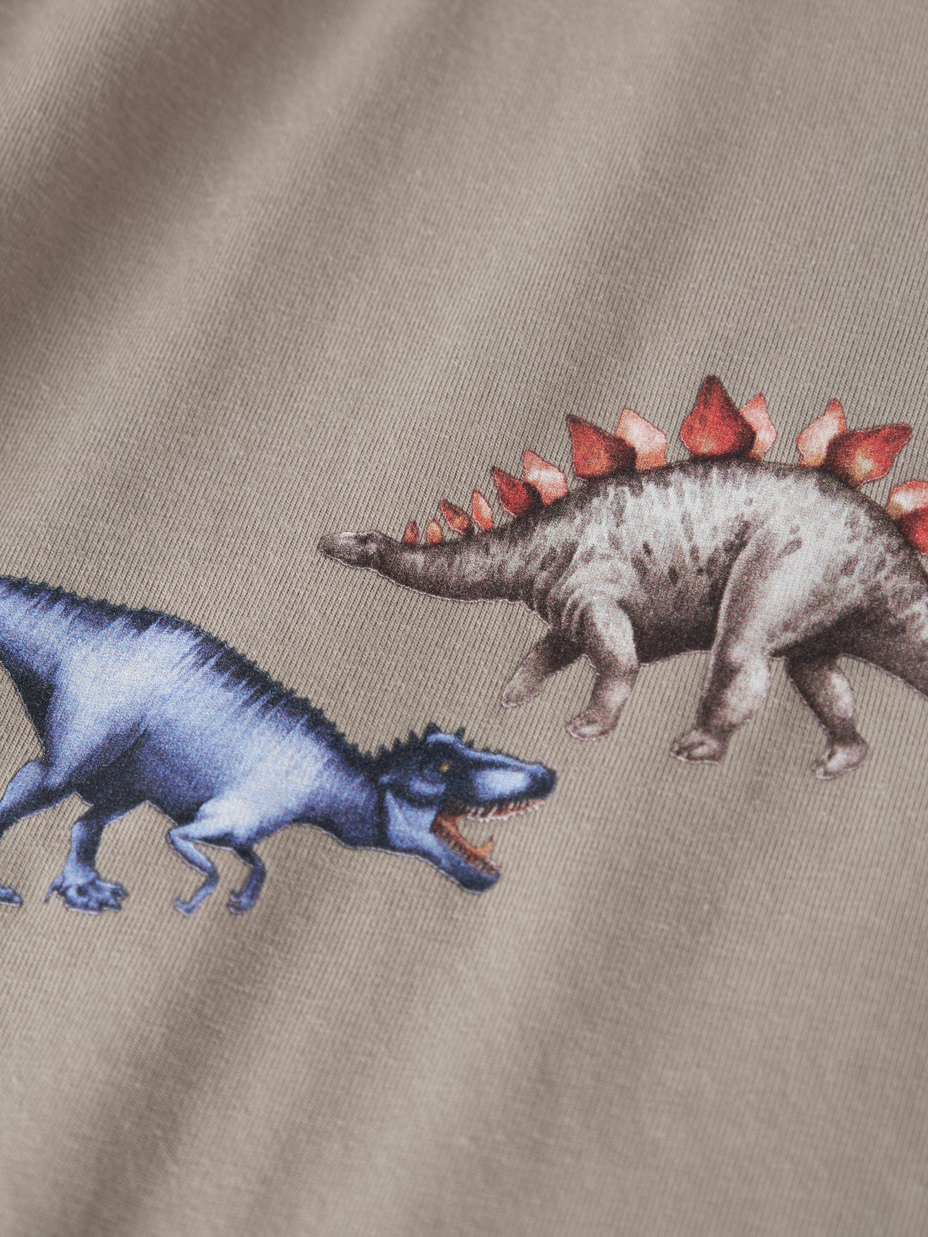 En virkelig sej, langærmet bluse fra Name it med dinosaurer på maven. Blusen har rund halsåbning og er i dejlig, blød bomuld.