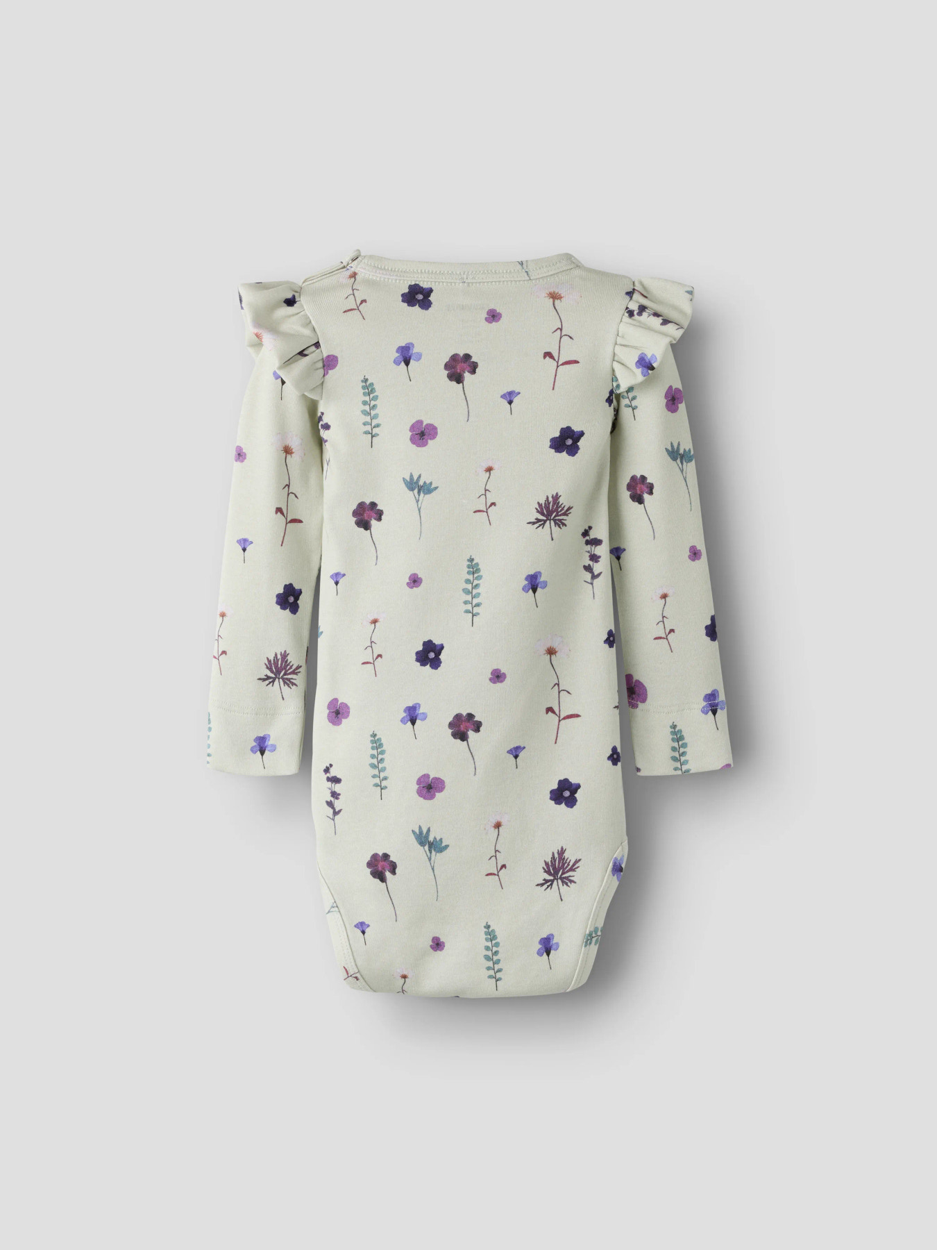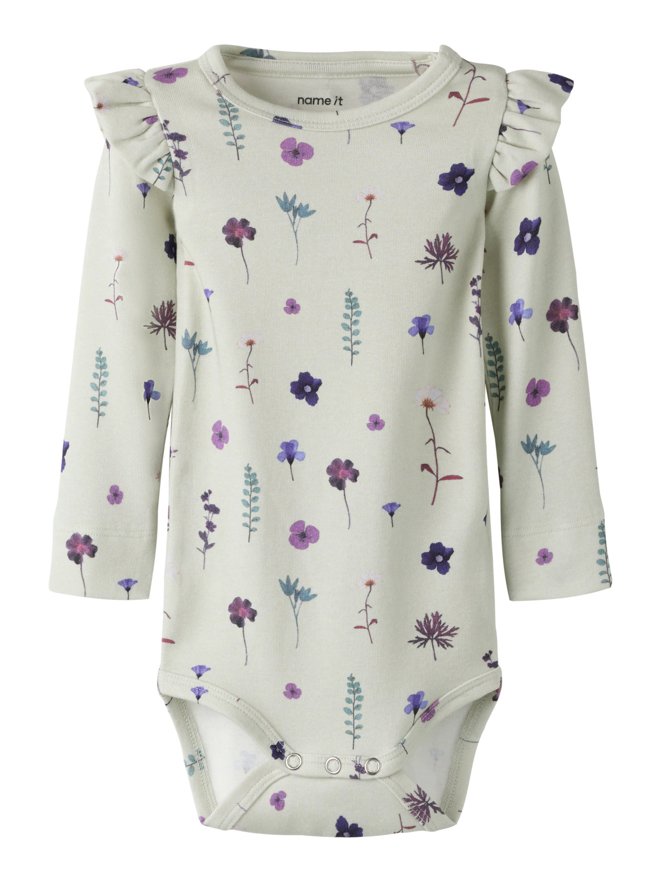 Opdater dit barns garderobe med denne fine og blød body fra Name It. Den har rund hals, lange ærmer, flæsedetaljer og trykknapper ved skulder og ved bleen der gør den både fin og funktionel. Det gennemgående blomster print fuldender stilen.