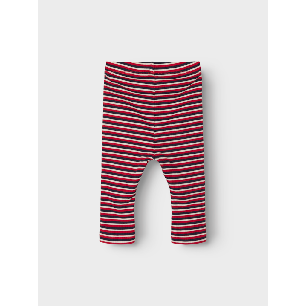 De sødeste leggings i rib med striber i røde, blå & cream farver.