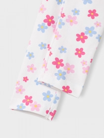 Super søde leggings fra Name it. De er i en hvid farve med et fint print af fine blomster over det hele. De er lavet i en blød og lækker kvalitet, og er med en god elastikkant i livet.