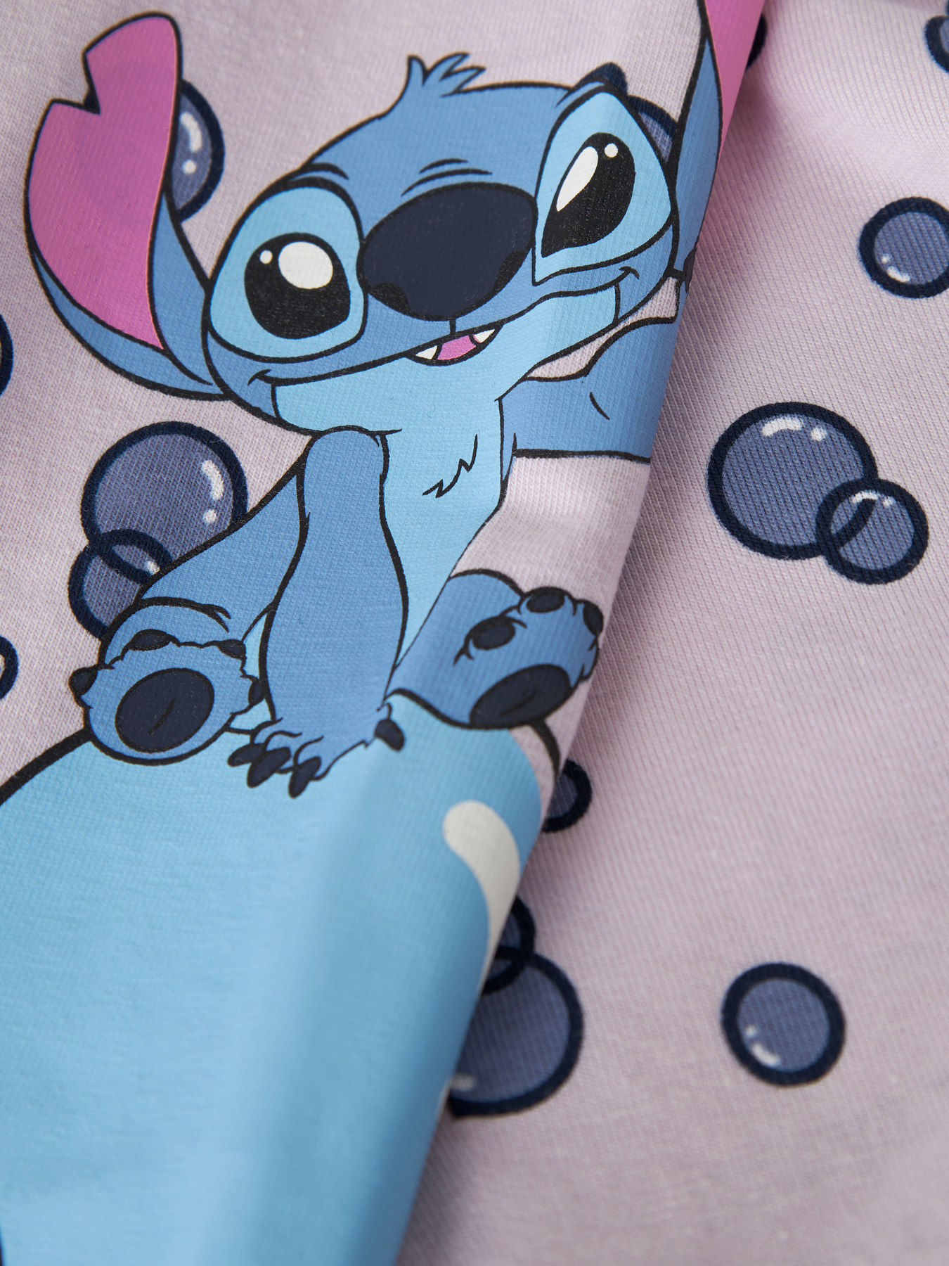 Skab et cool og komfortabelt outfit til dit barn med disse bløde og strækbare leggings. Lavet i let og elastisk jersey for høj komfort og bevægelsesfrihed. Leggingsene har det sødeste all-over Stitch print samt et større print nederst på det ene ben.
