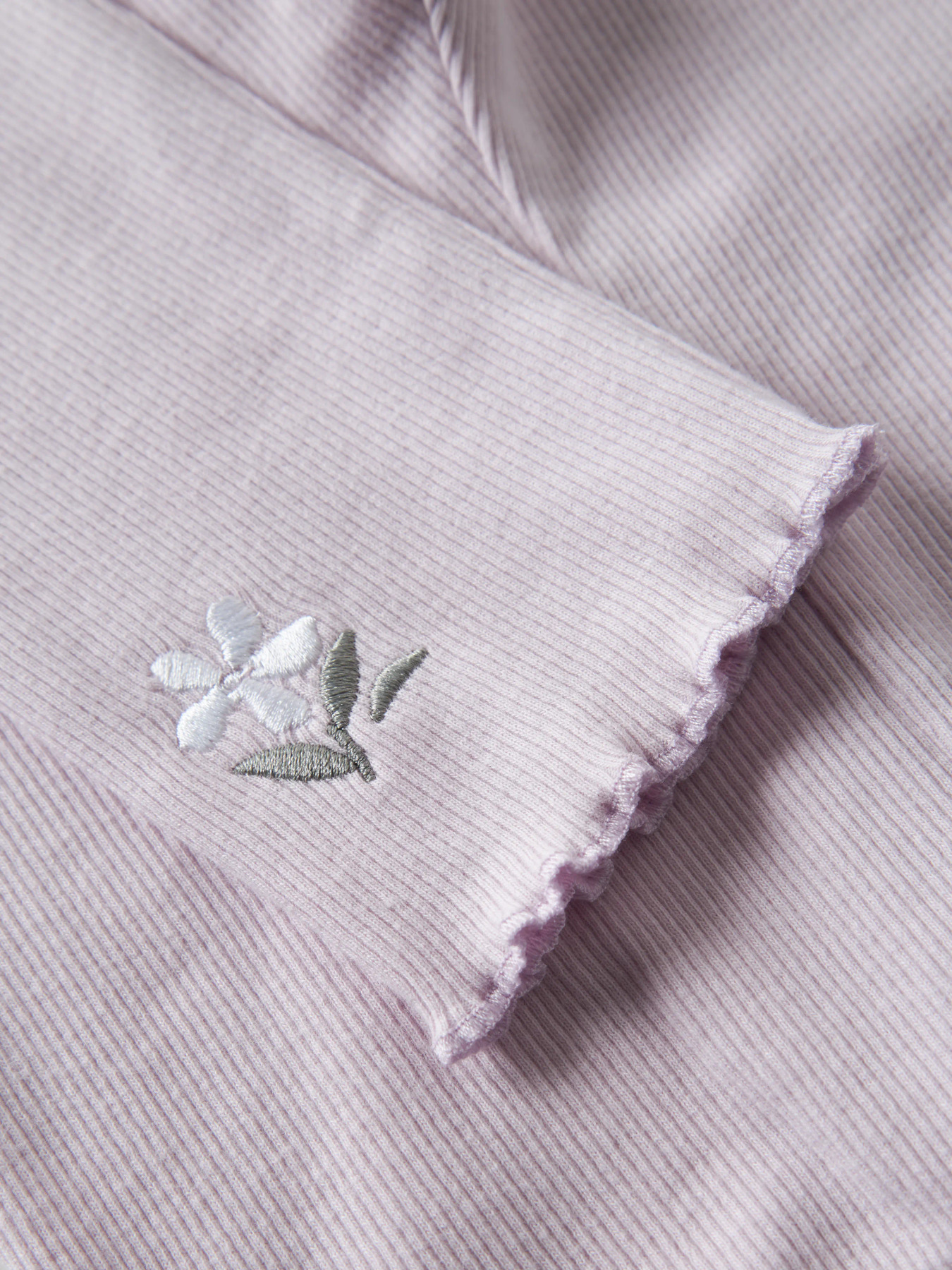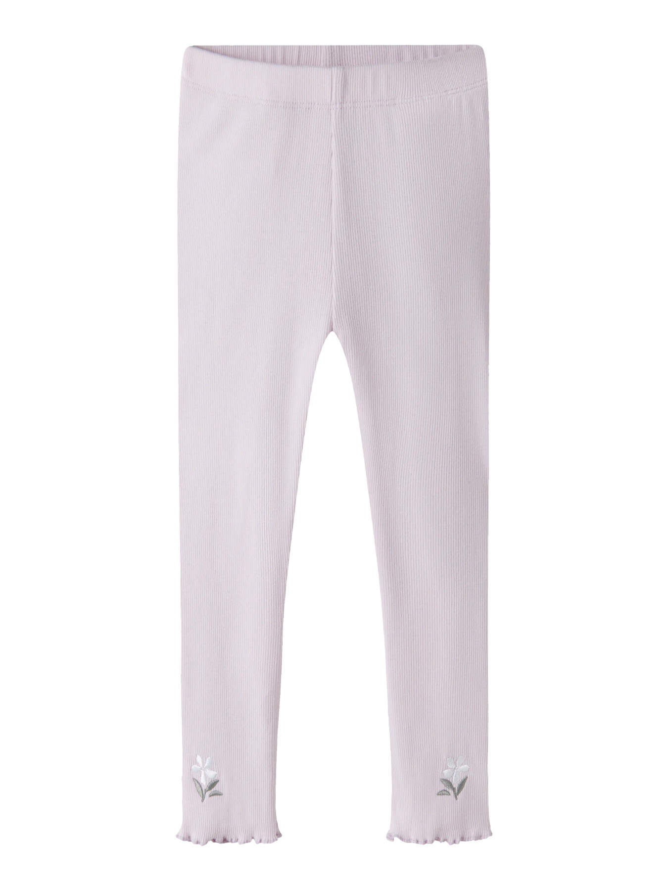 De smukkeste rib leggings fra name it, de er i en skøn farve med en blomst på og en fin bølgekant forneden.