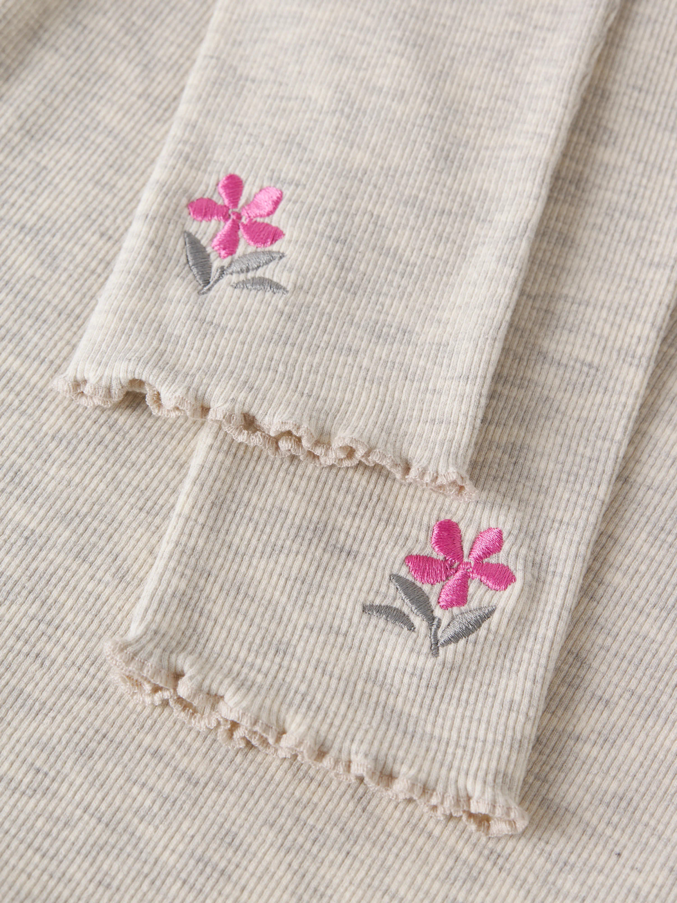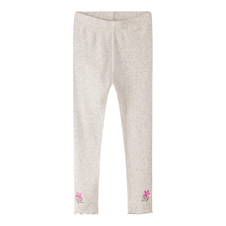 De smukkeste rib leggings fra name it, de er i en skøn farve med en blomst på og en fin bølgekant forneden.