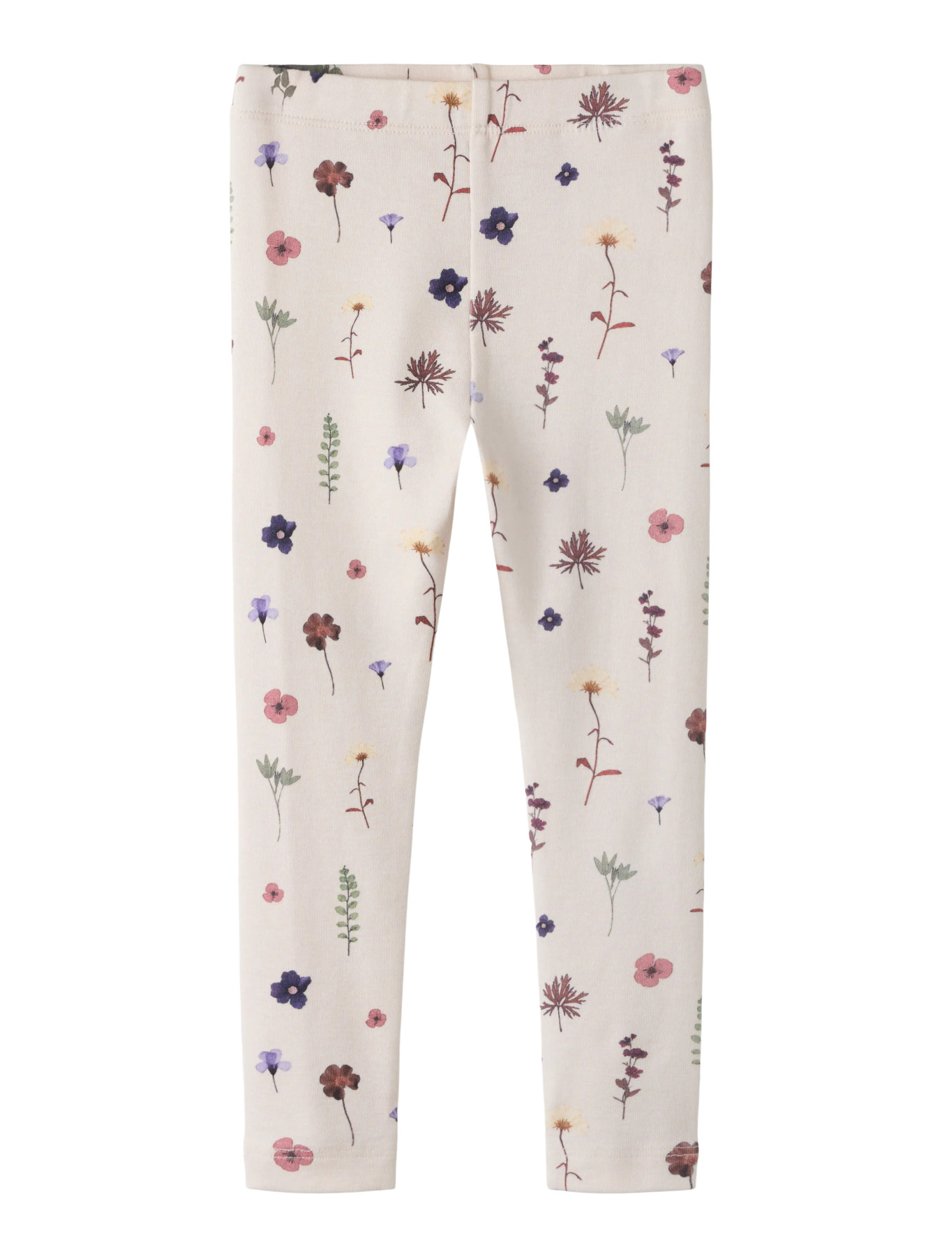 Bløde og strækbare leggings fra Name It. De har et gennemgående fint blomster print og den tætsiddende pasform skaber et moderne og stilrent udtryk.